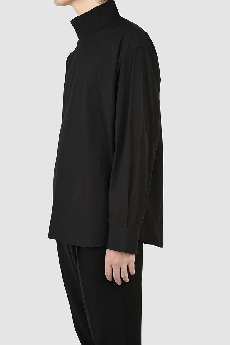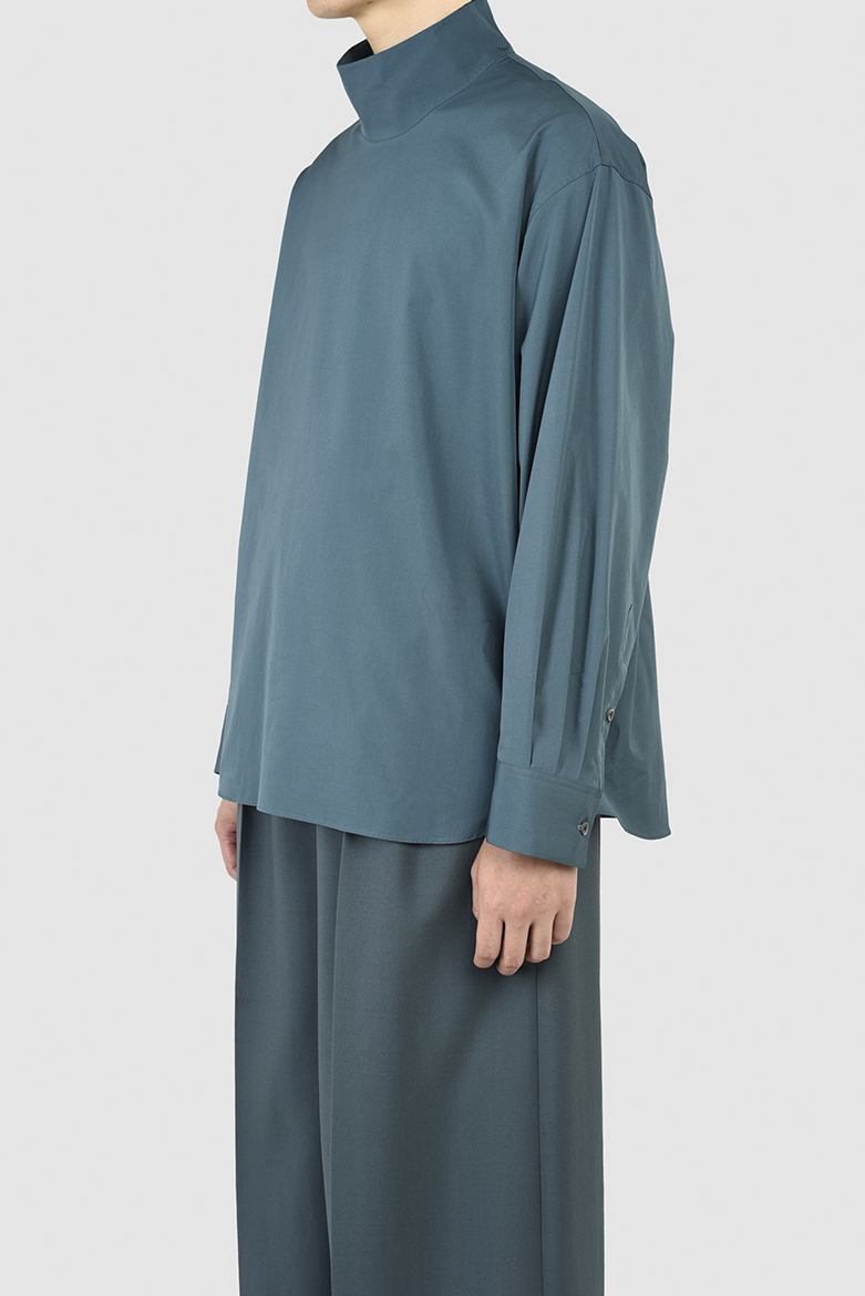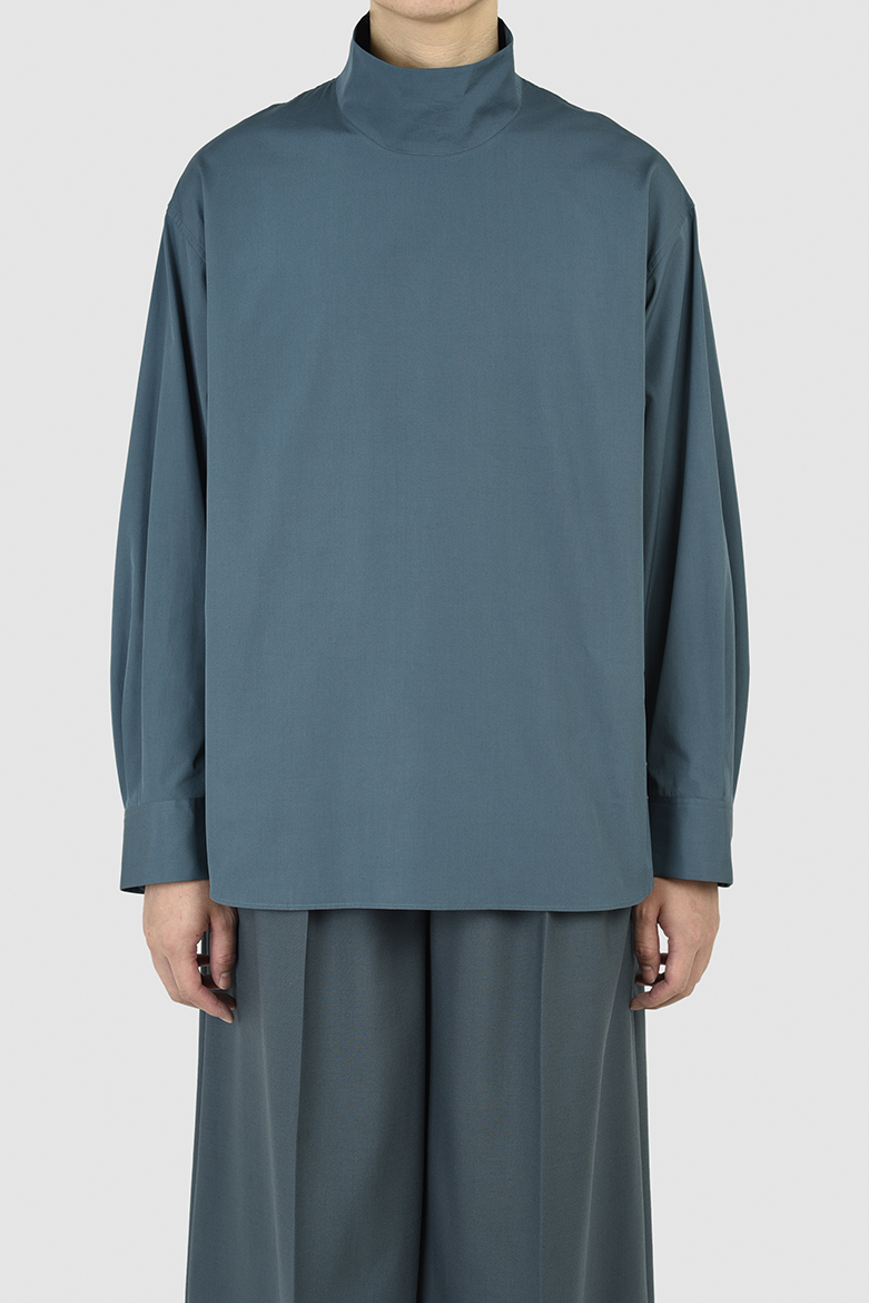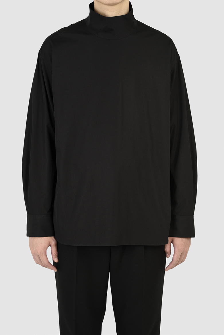 柔らかく着心地の良いブロード素材を使用したハイネックシャツ。