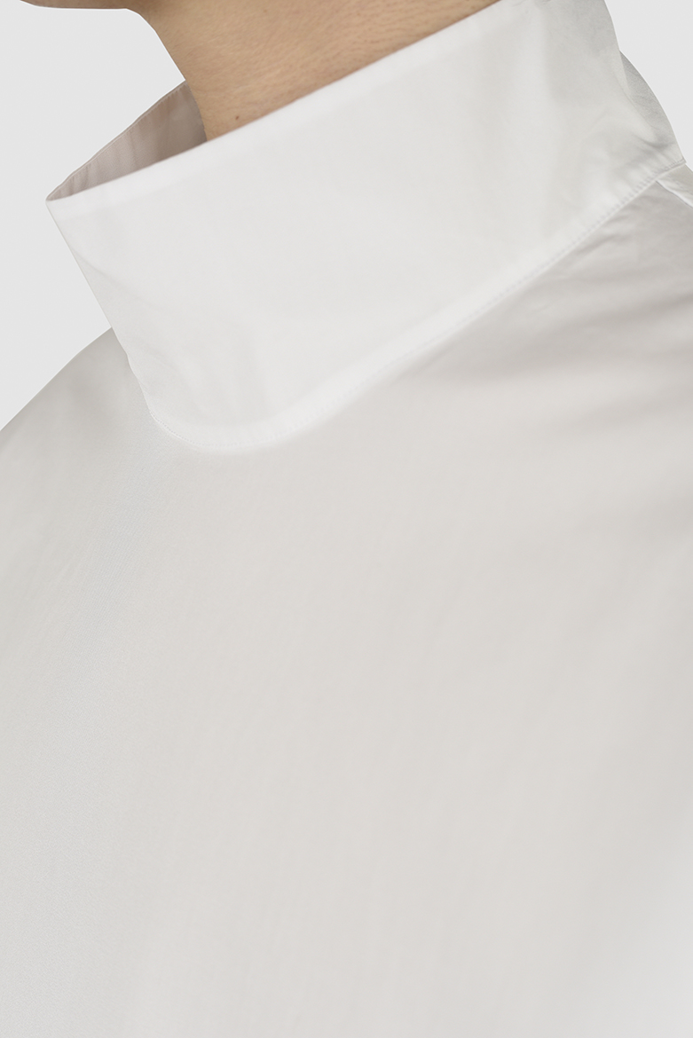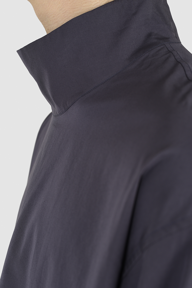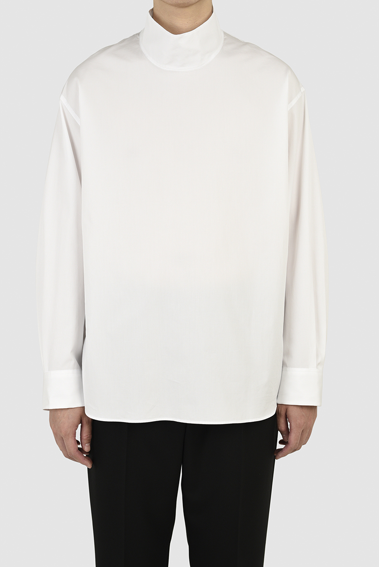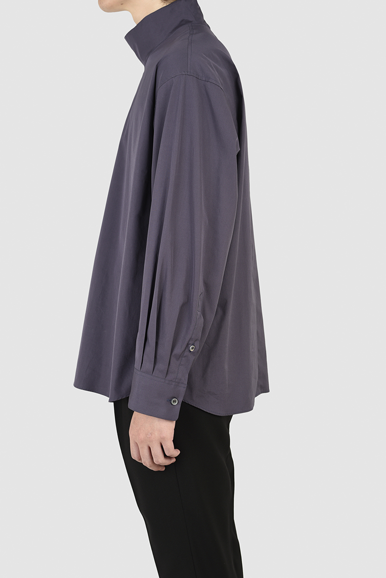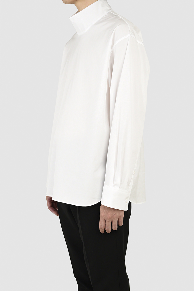 柔らかく着心地の良いブロード素材を使用したハイネックシャツ。