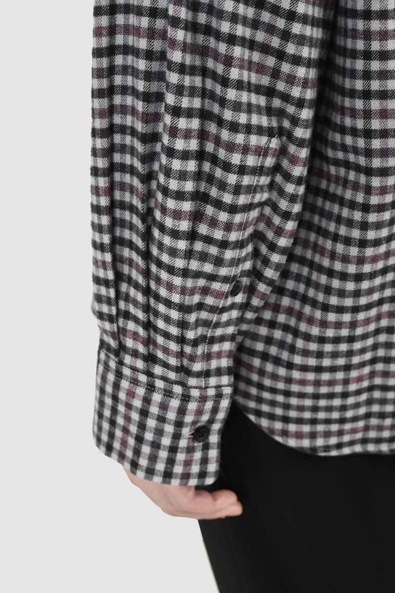 クラシカルなガンクラブチェック柄のフランネル素材を使用したボウカラーシャツ。