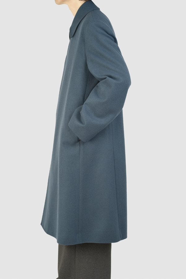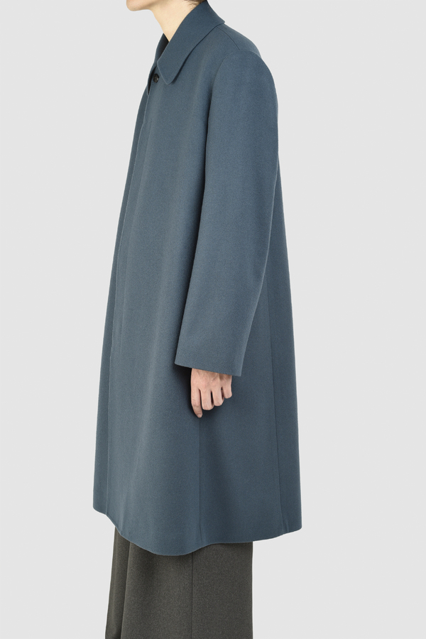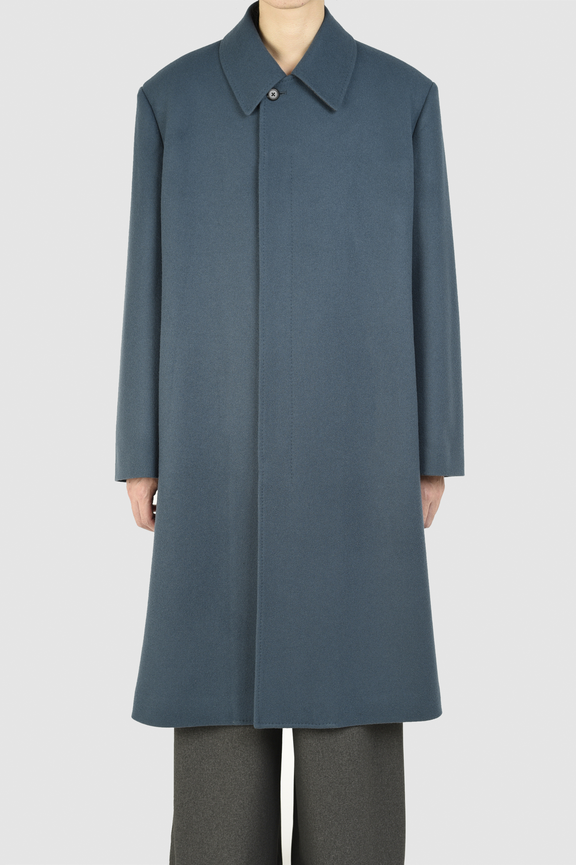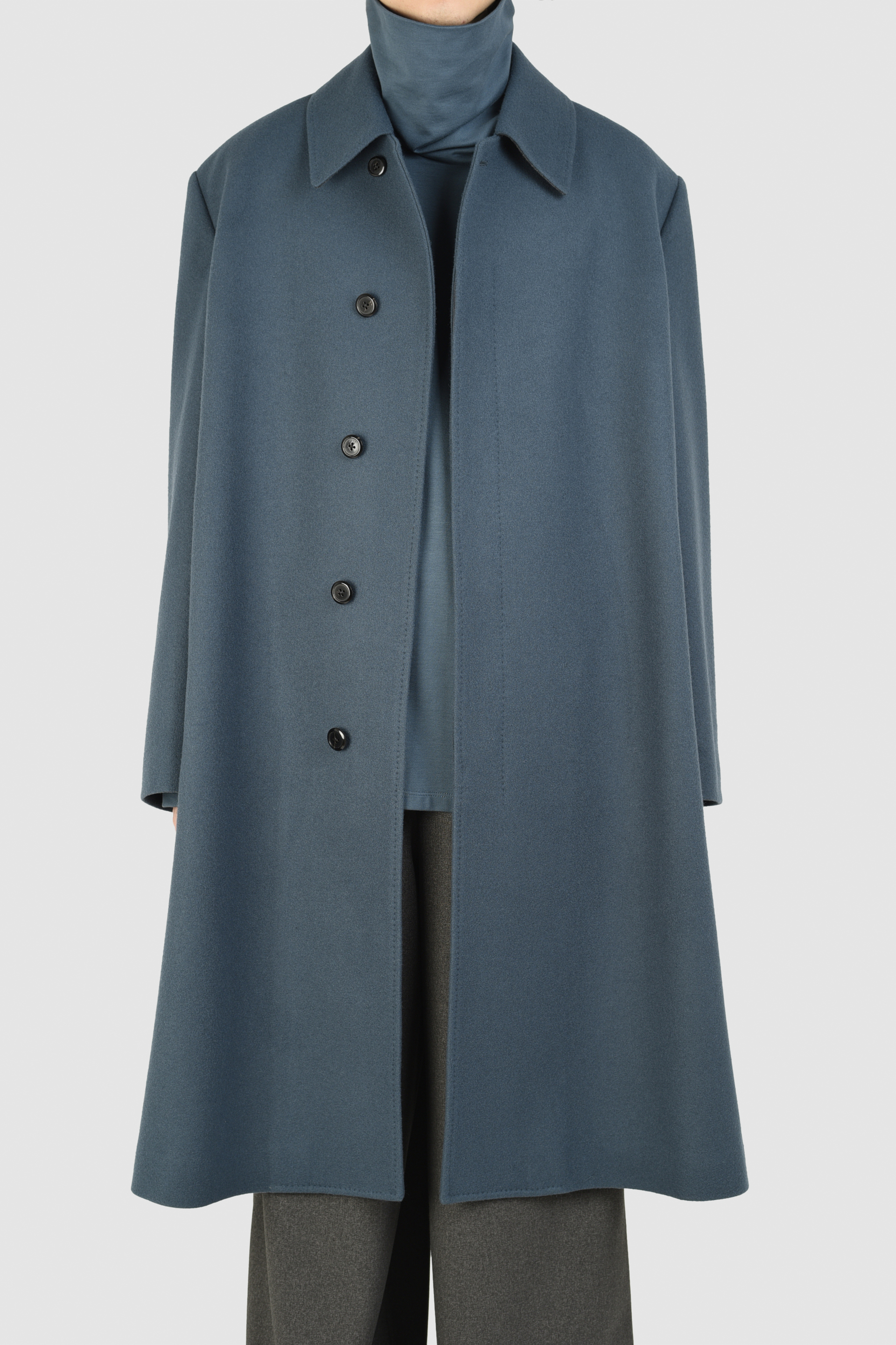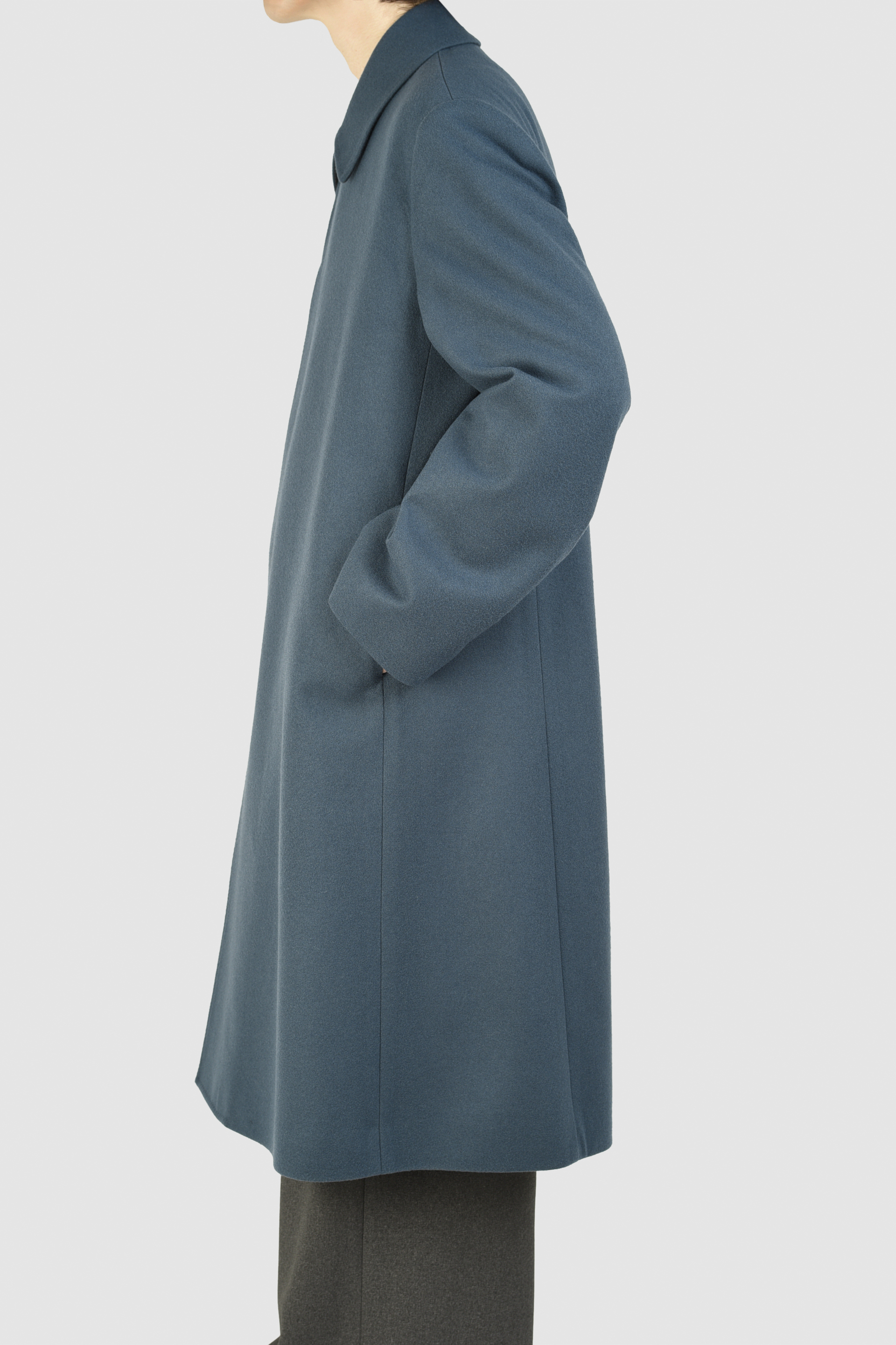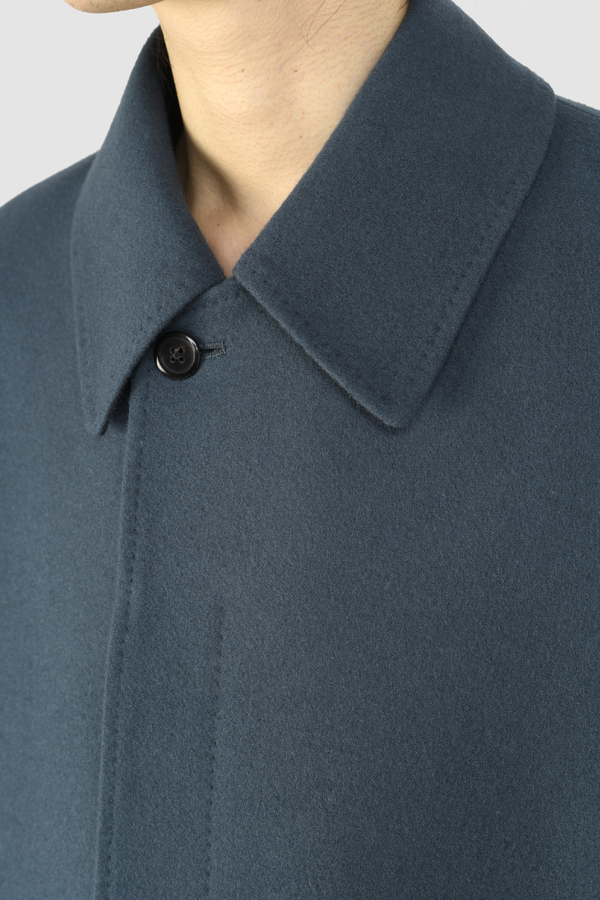 きれいな表面と柔らかさを持ったメルトン素材を使用したステンカラーコート。