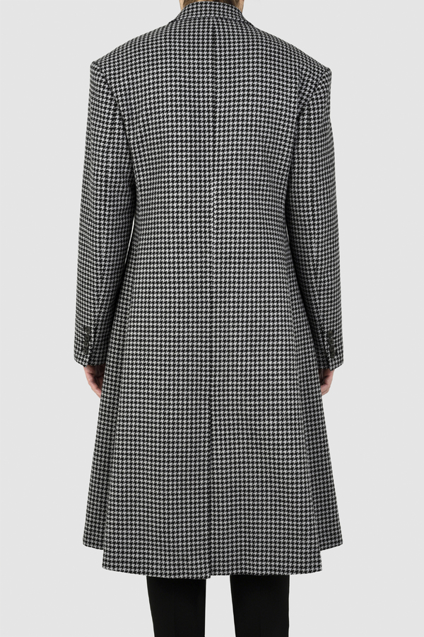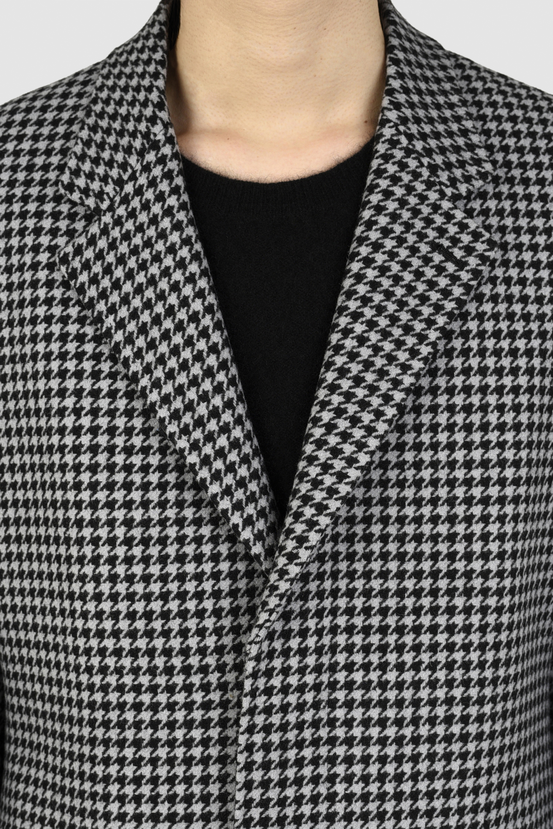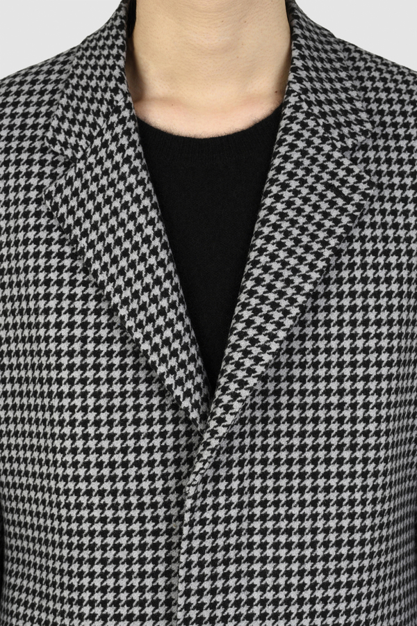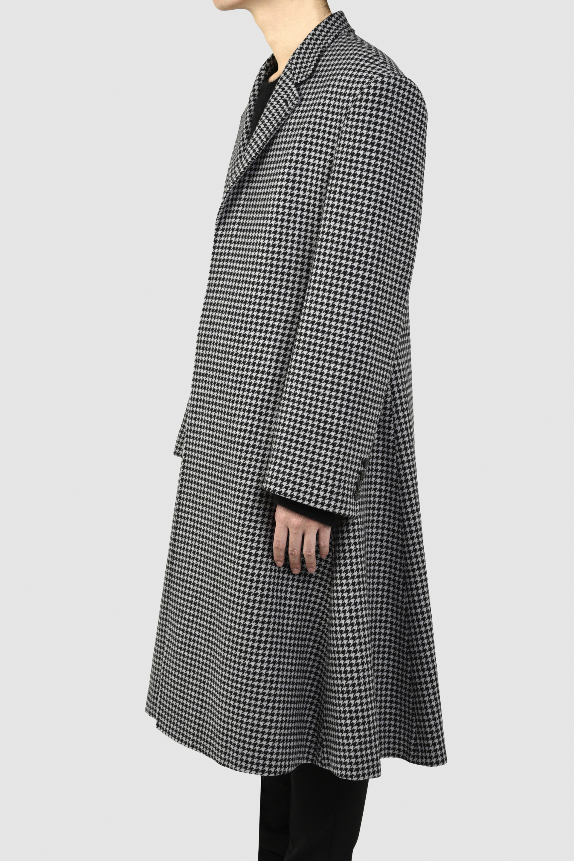 クラシカルなハウンズトゥース柄のメルトン素材を使用したフレアチェスターコート。