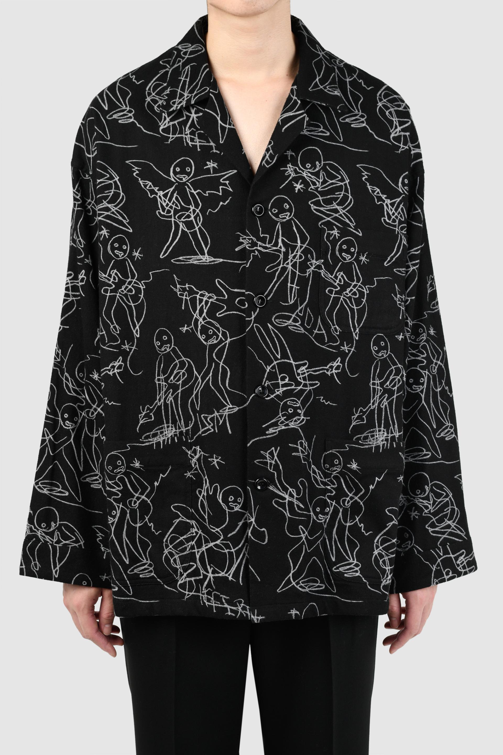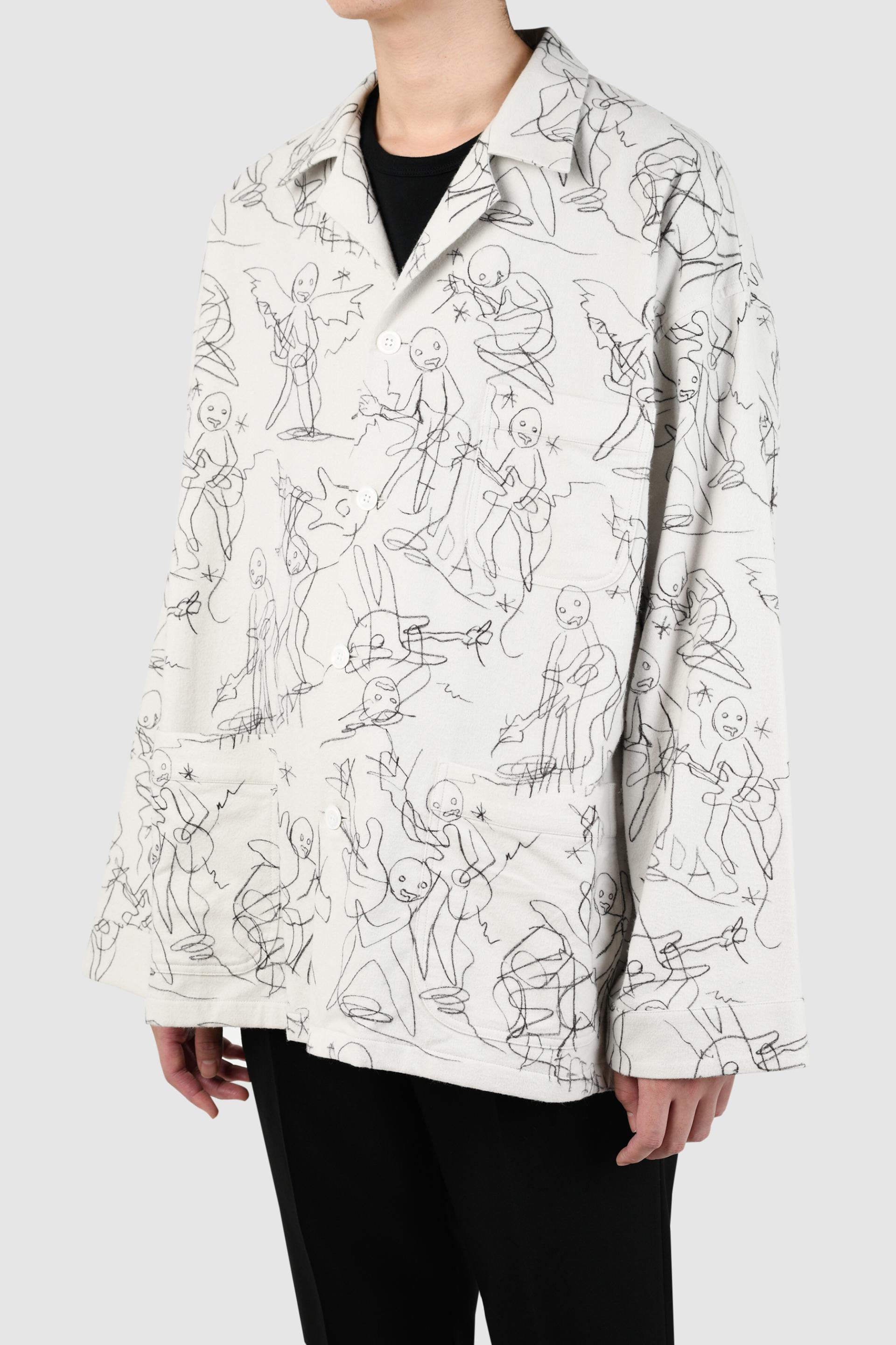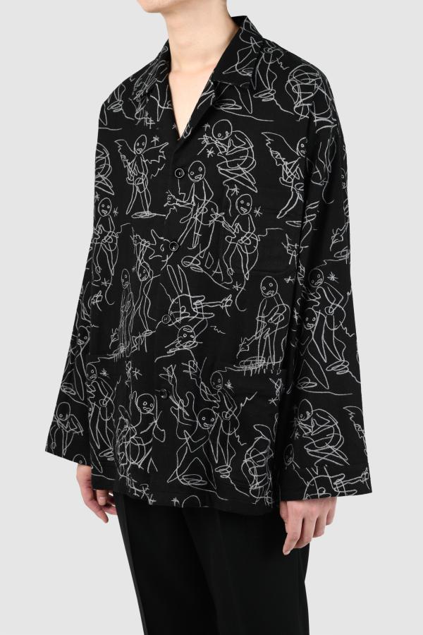 DIFFERENT柄をプリントしたフランネル素材を使用したビッグパジャマシャツ。