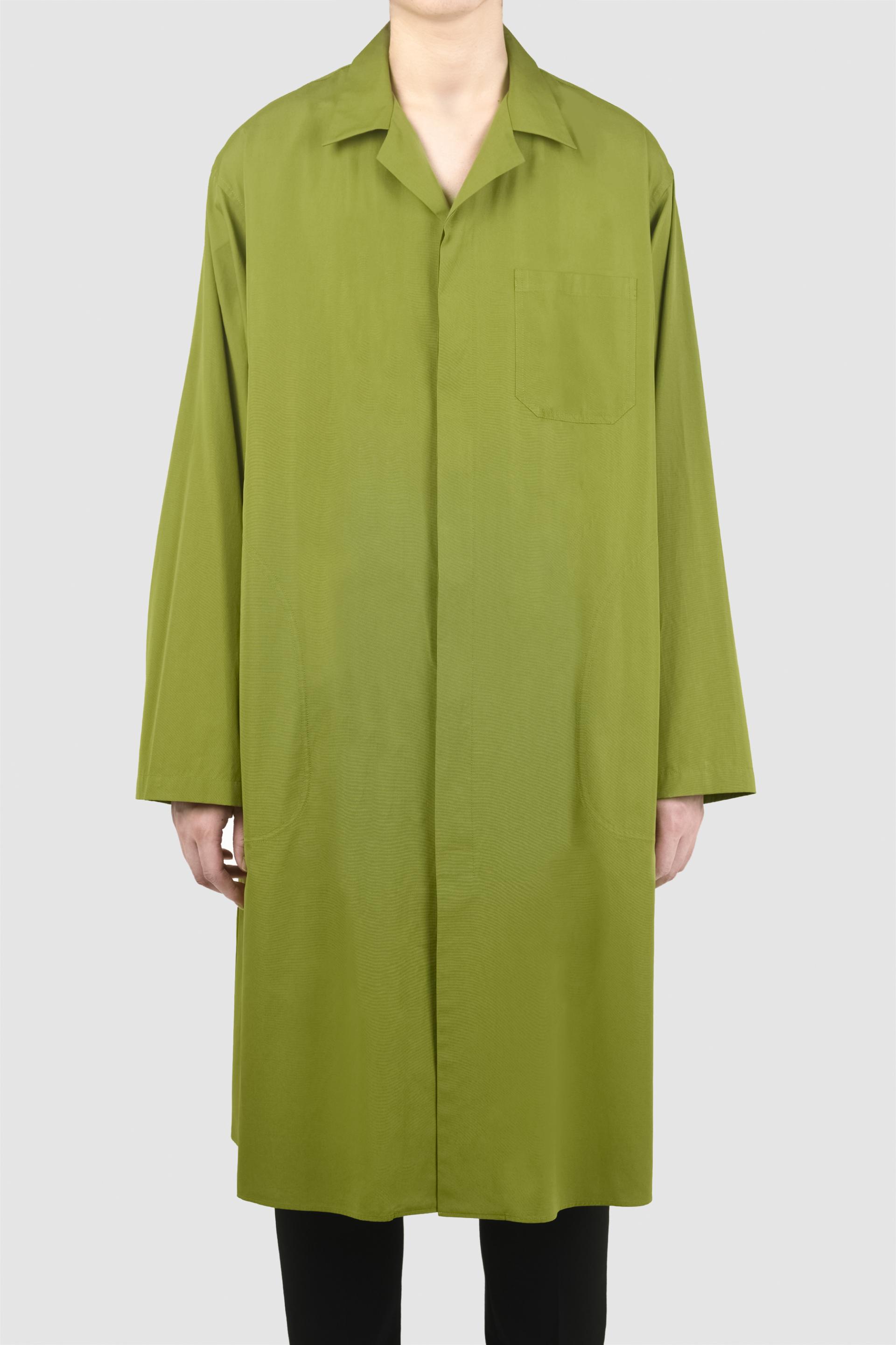 実験室の作業着から着想しフロントにポケットを配したAラインシルエットのシャツコートです。- BROAD CLOTH:COTTON 100%