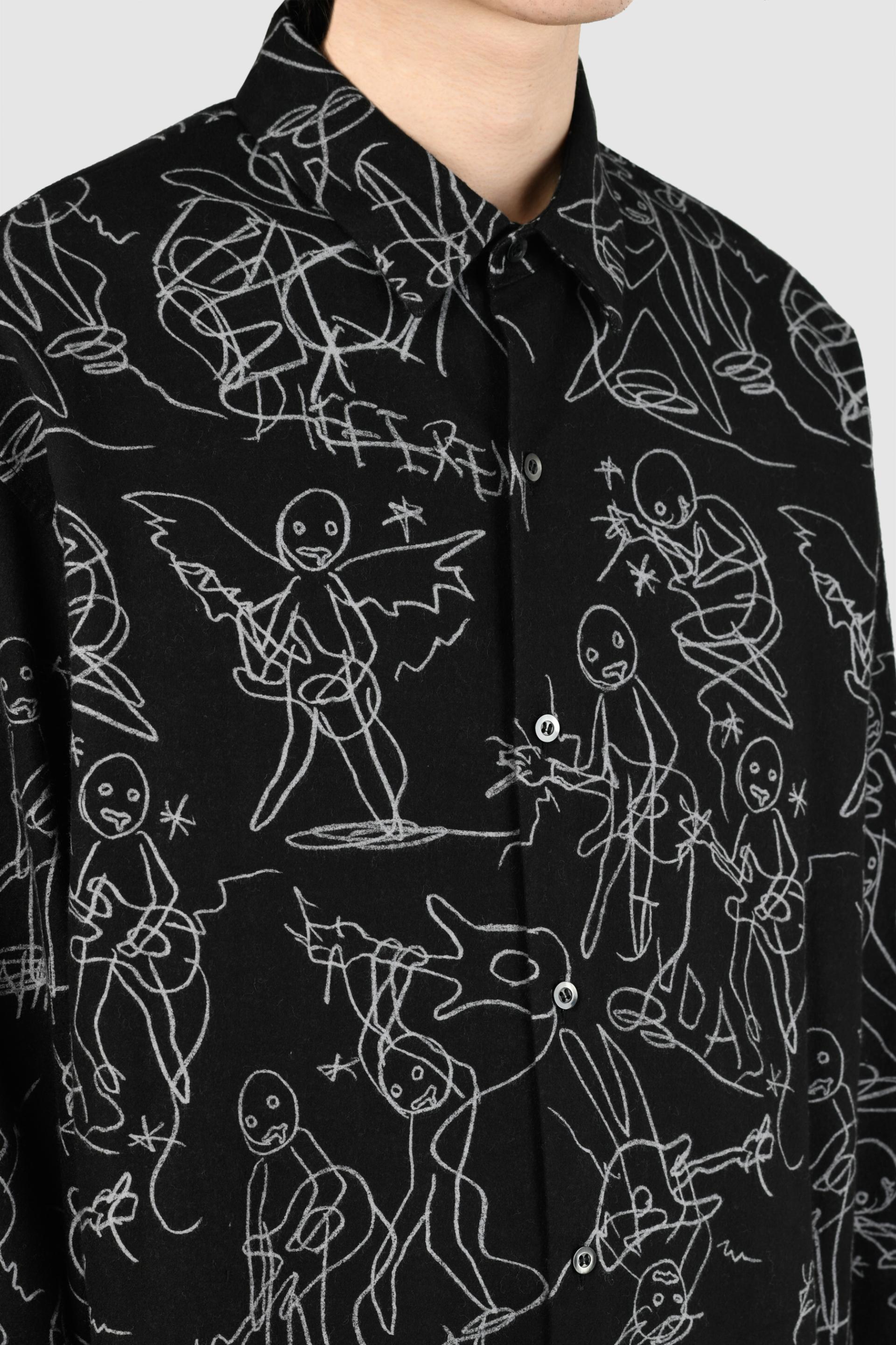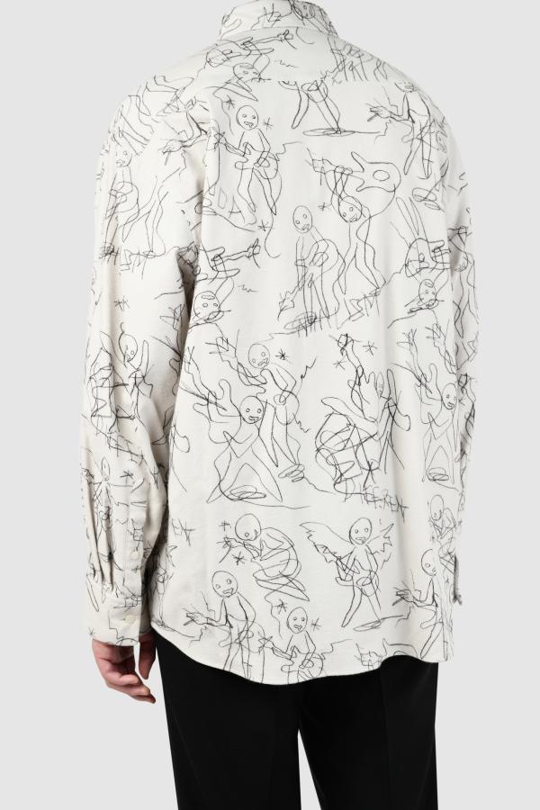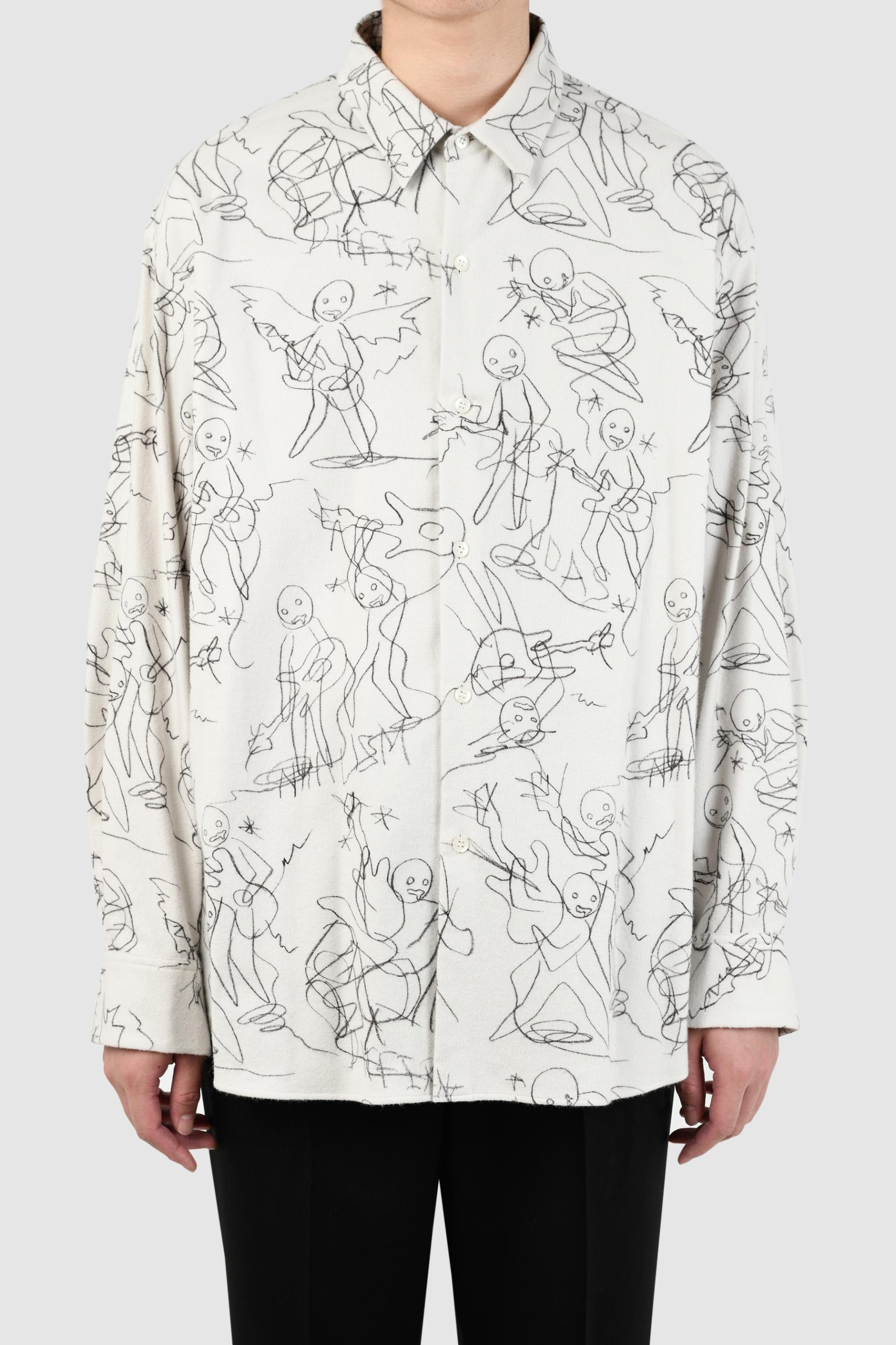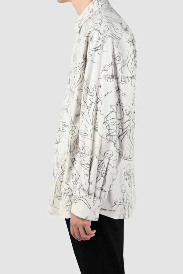 DIFFERENT柄をプリントしたフランネル素材を使用したビッグパジャマシャツ。