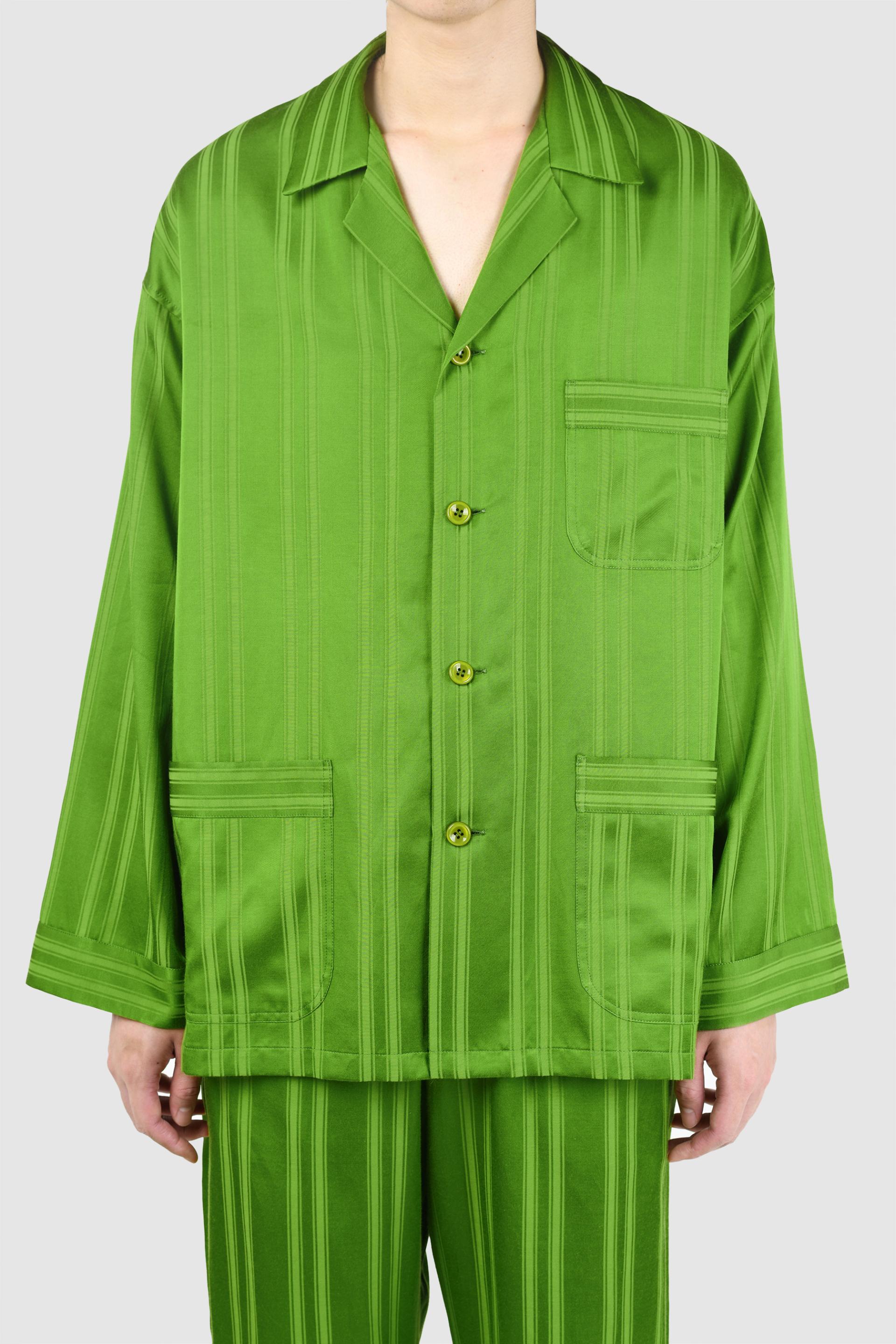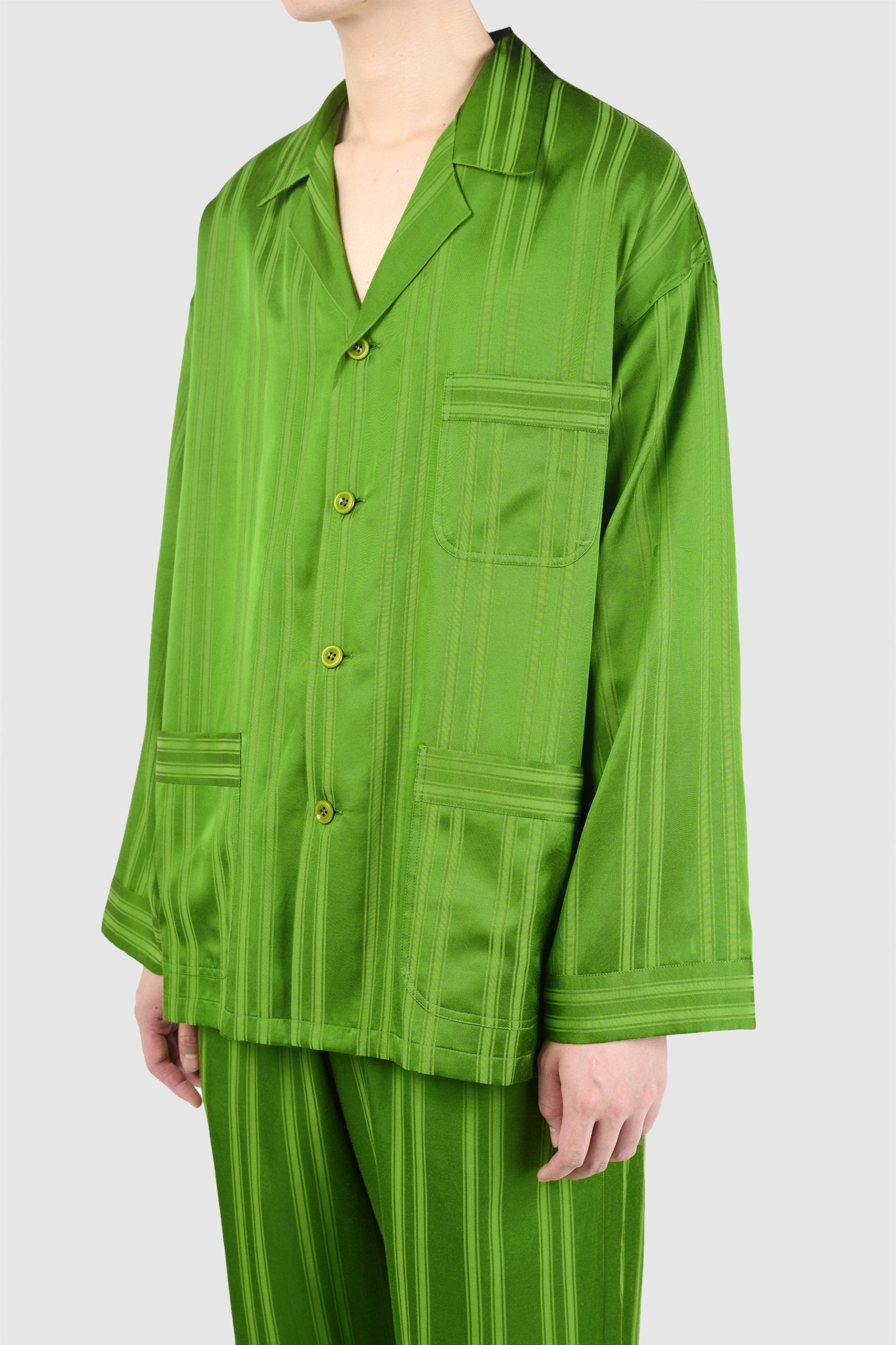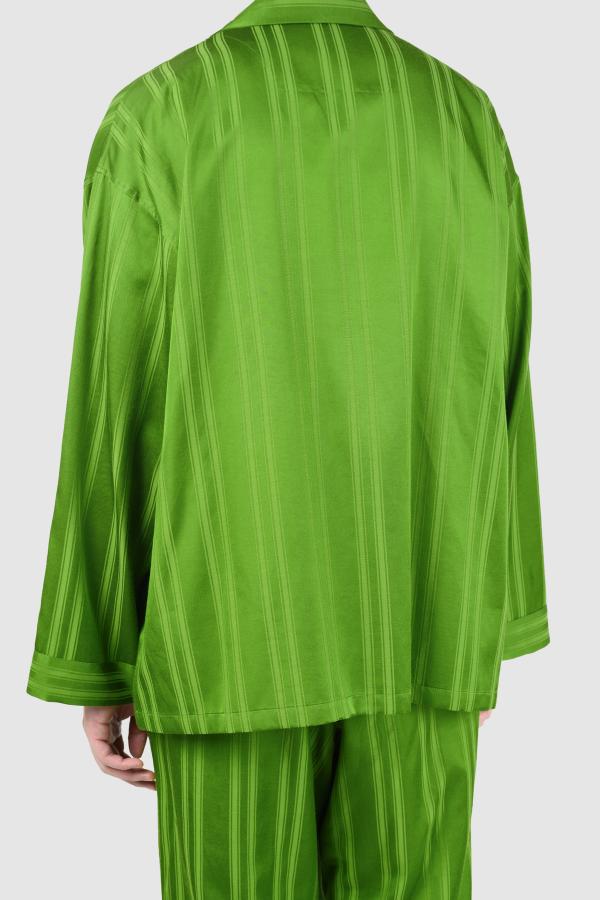 ストライプ柄のサテン素材を使用したビッグパジャマシャツ。