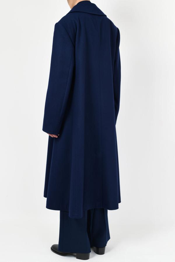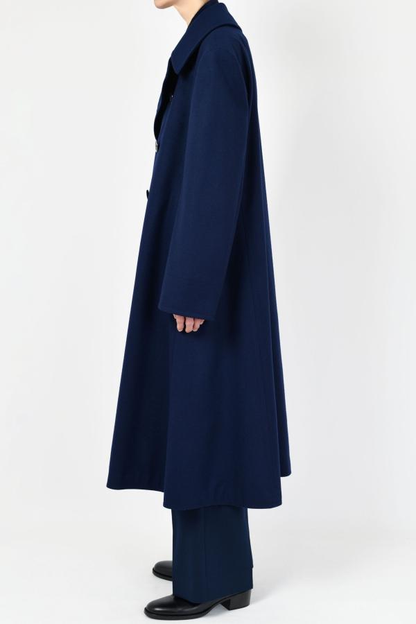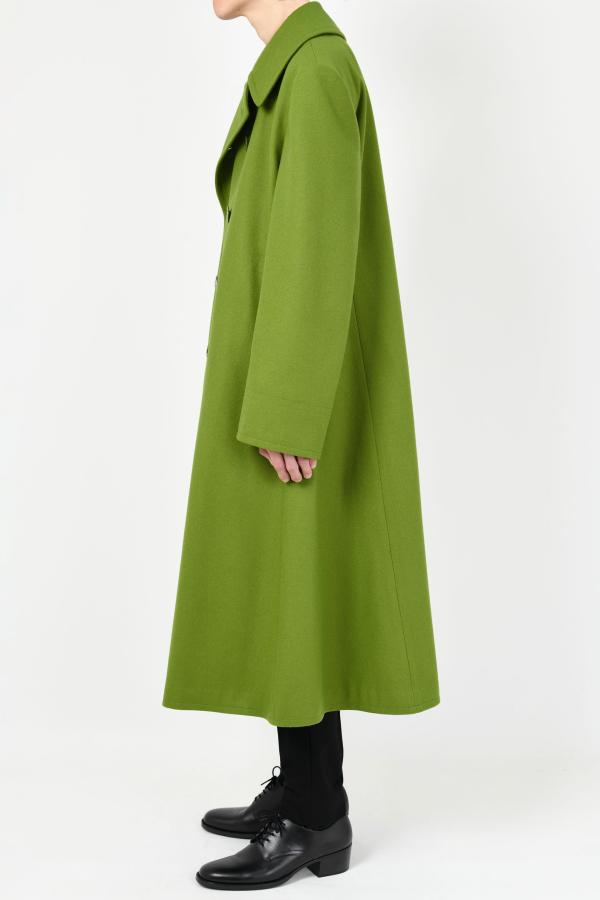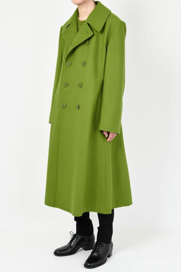 きれいな表面と柔らかさを持ったメルトン素材を使用したロングフレアPコート。