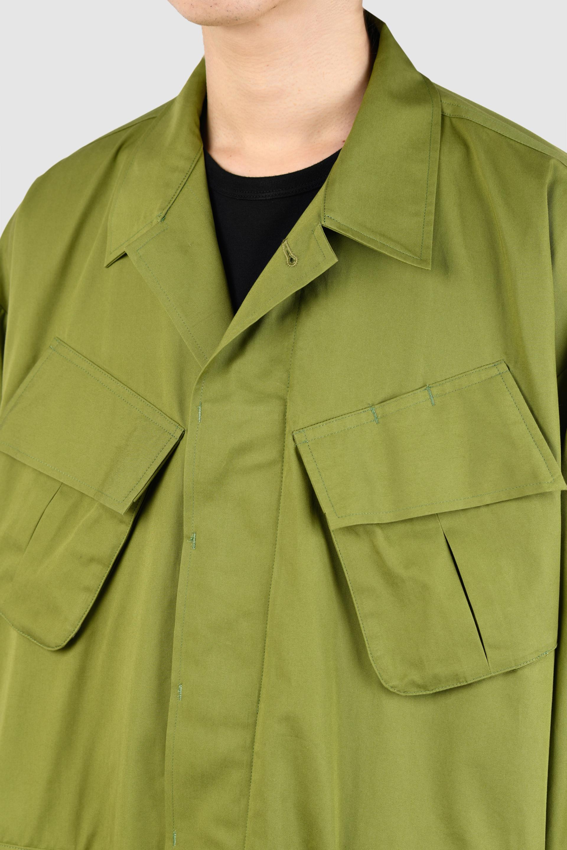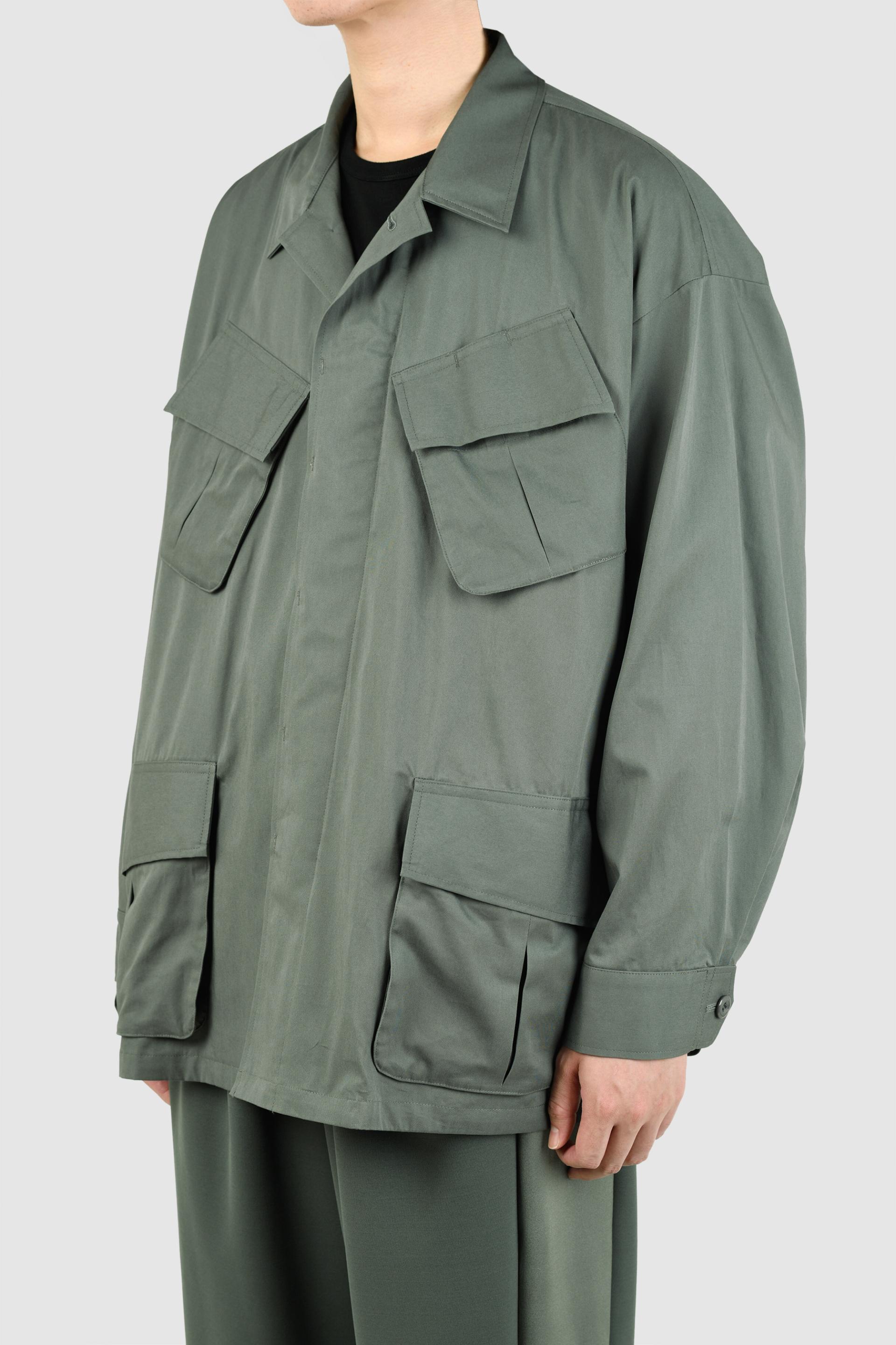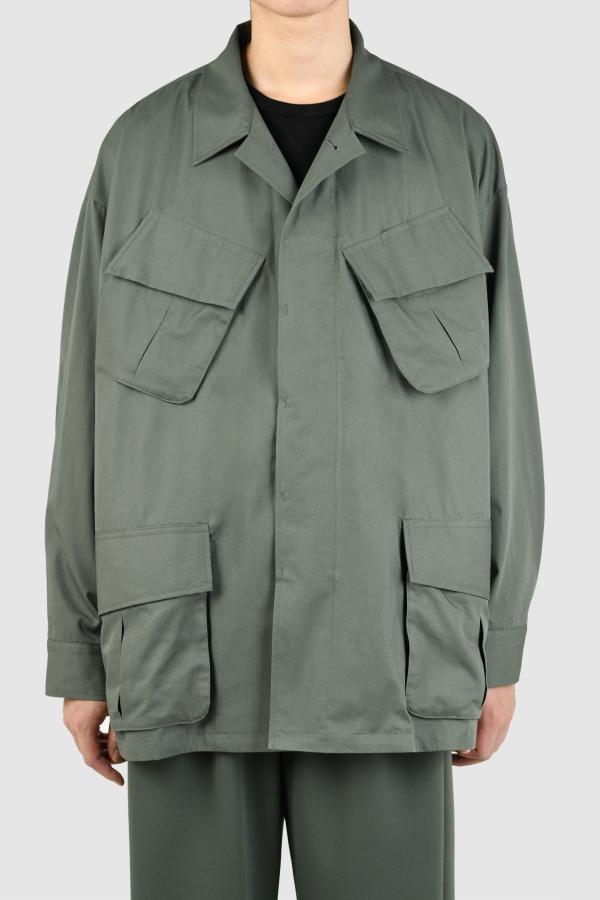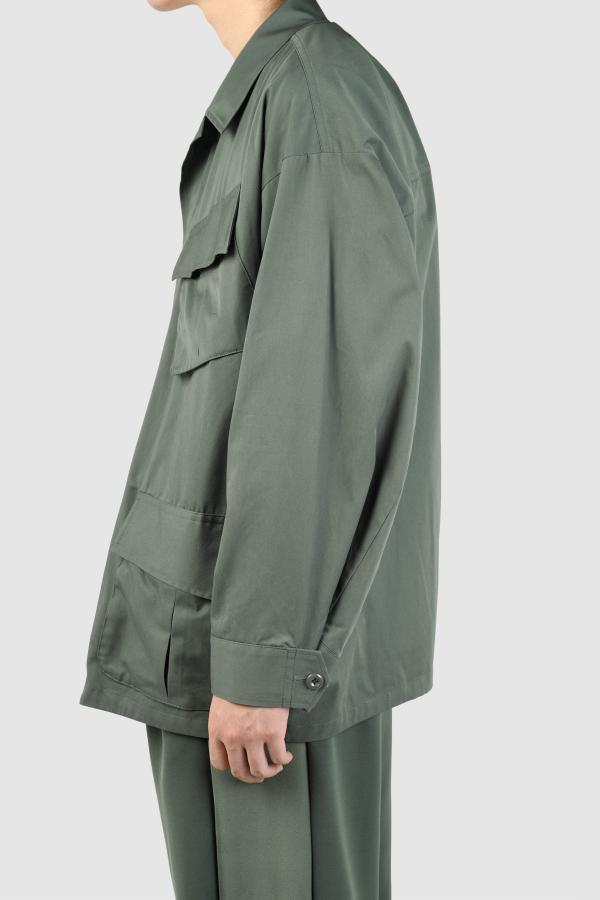アメリカ軍のジャングルファティーグをモチーフに、袖や背中を立体的で丸みのあるシルエットにしています。- 30/1 GABARDINE:COTTON 100%