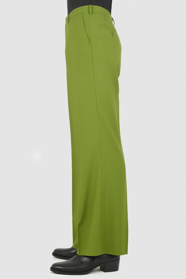上品な光沢としなやかな風合いを持つウールギャバ素材を使用したスリムフレアスラックス。