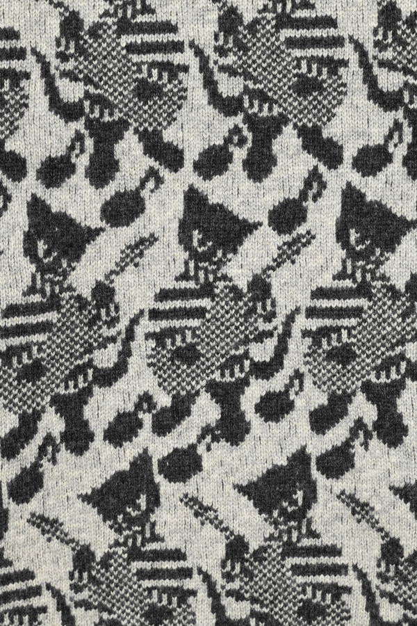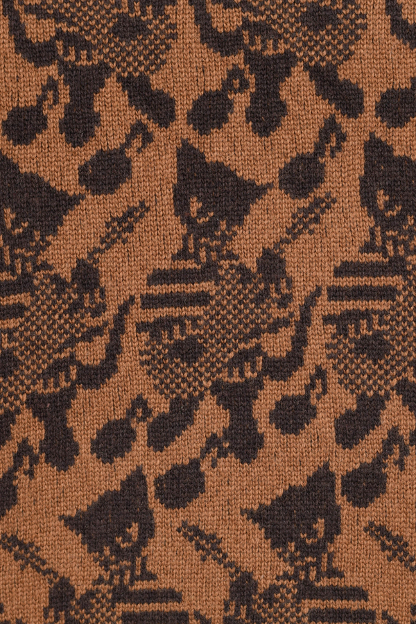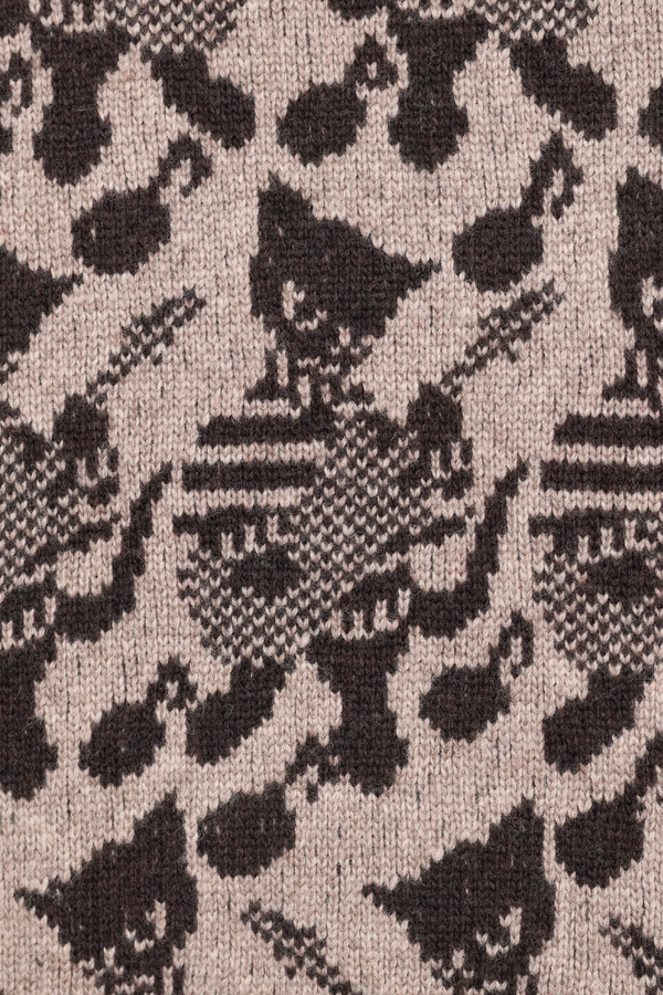 ギターを弾く猫や音符の柄をジャガード編みで表現しています。