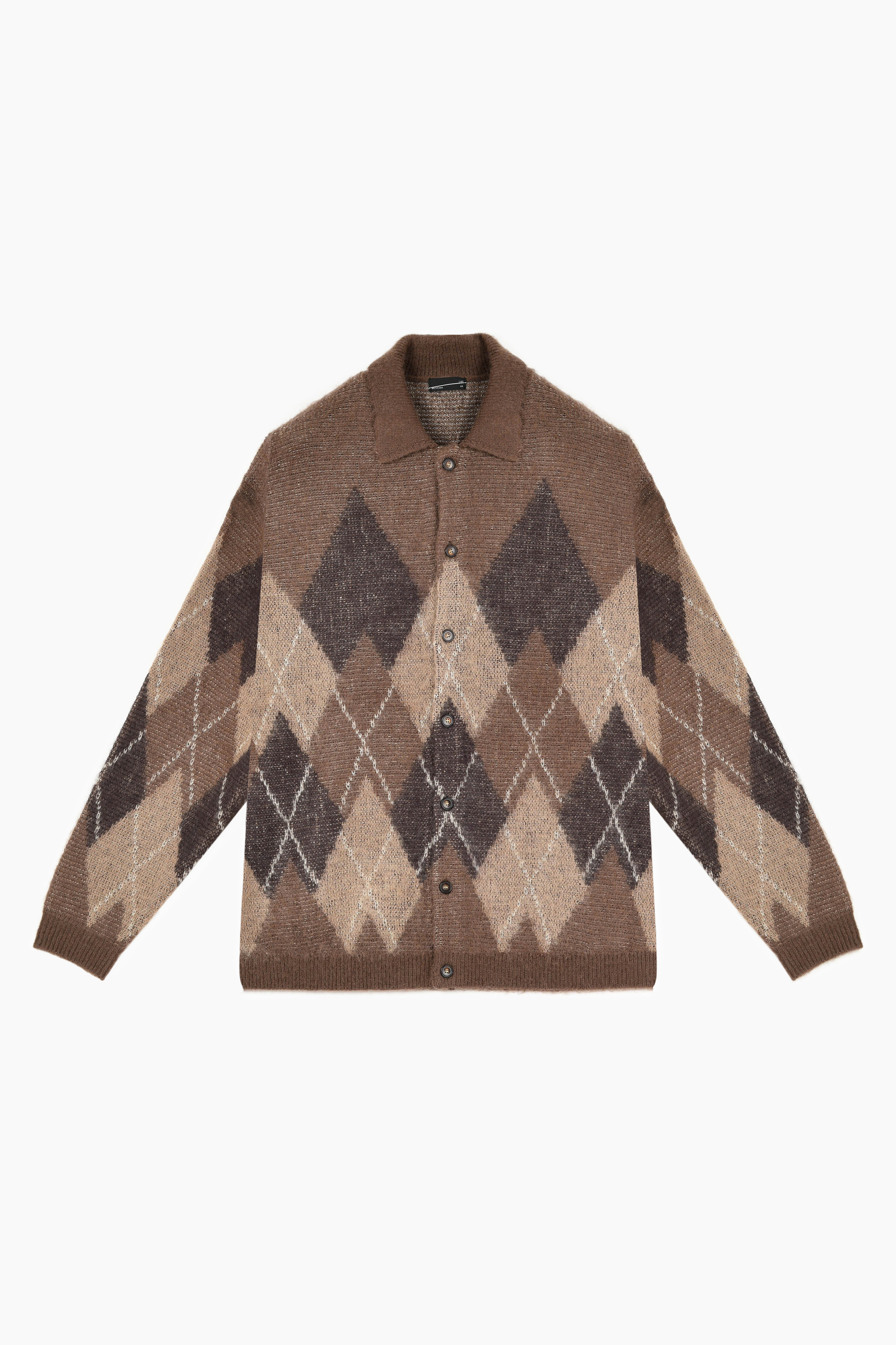 モヘアの混紡糸を使用したアーガイル柄のニットシャツ。