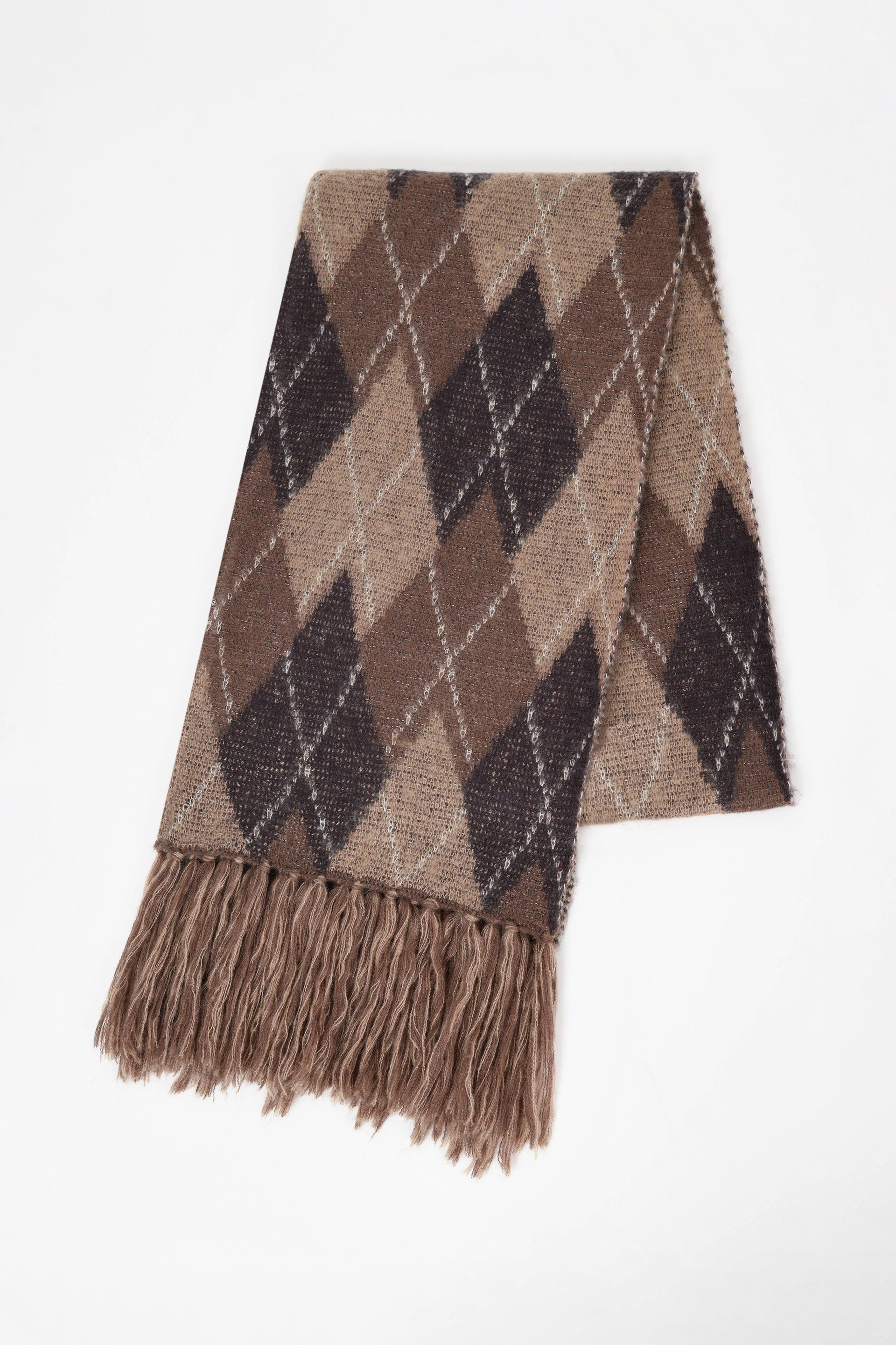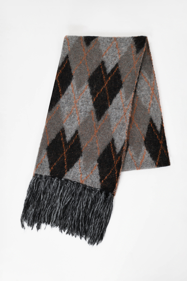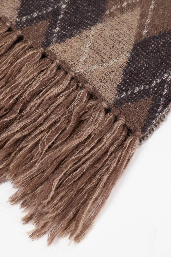 モヘアの混紡糸を使用したアーガイル柄のニットマフラー。