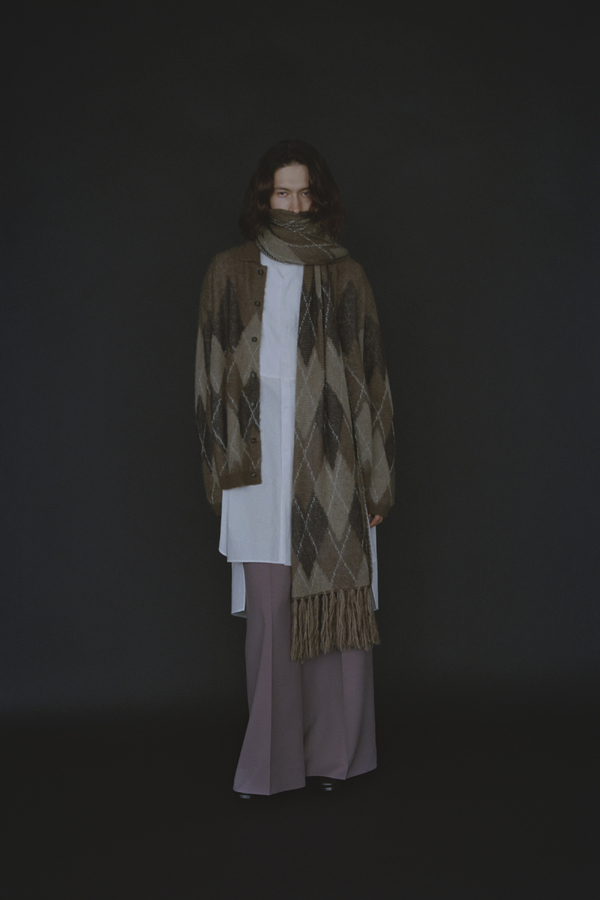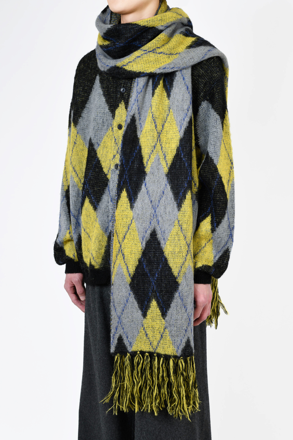 大判サイズの為、様々な巻き方でアレンジしていいただけます。- MOHAIR SHAGGY ARGYLE INTARSIA KNIT:ACRYLIC 55% NYLON 30% WOOL 10% MOHAIR 5%