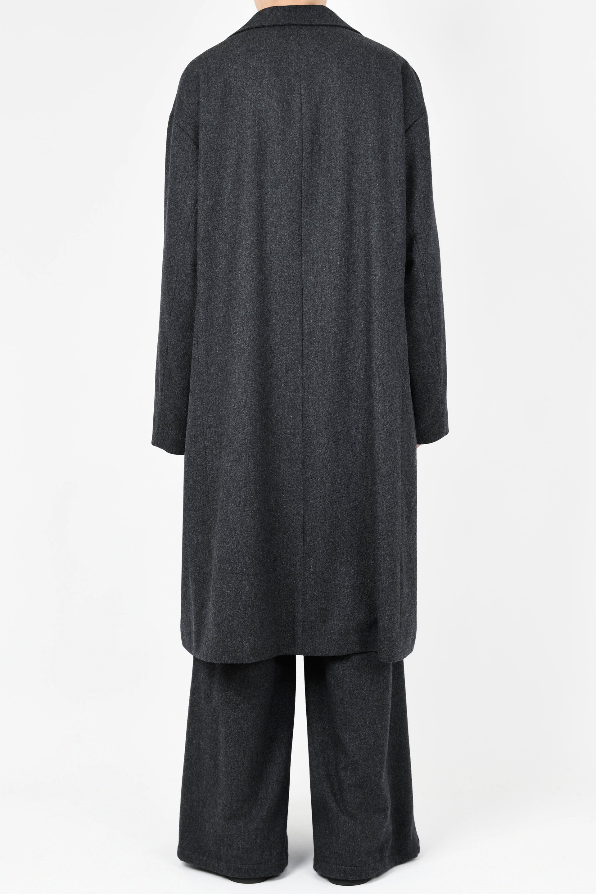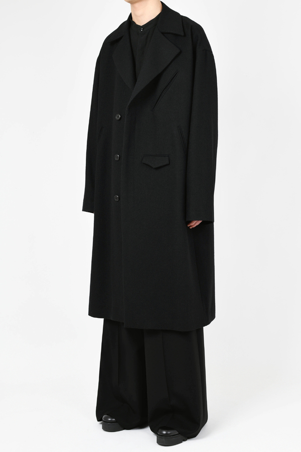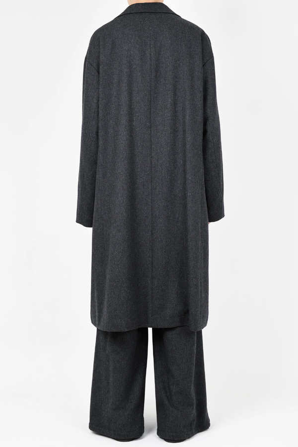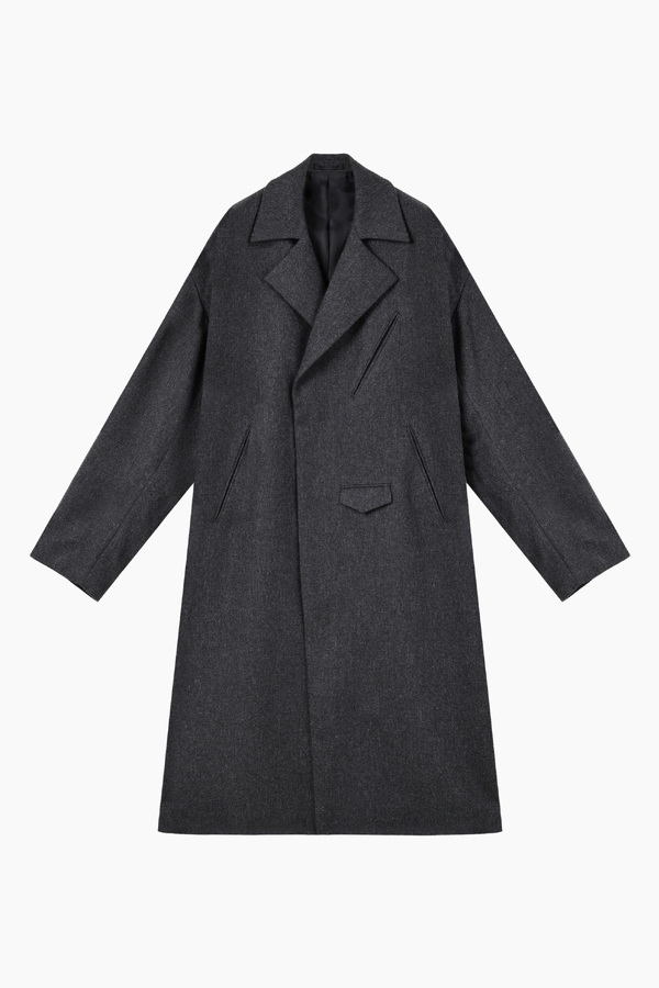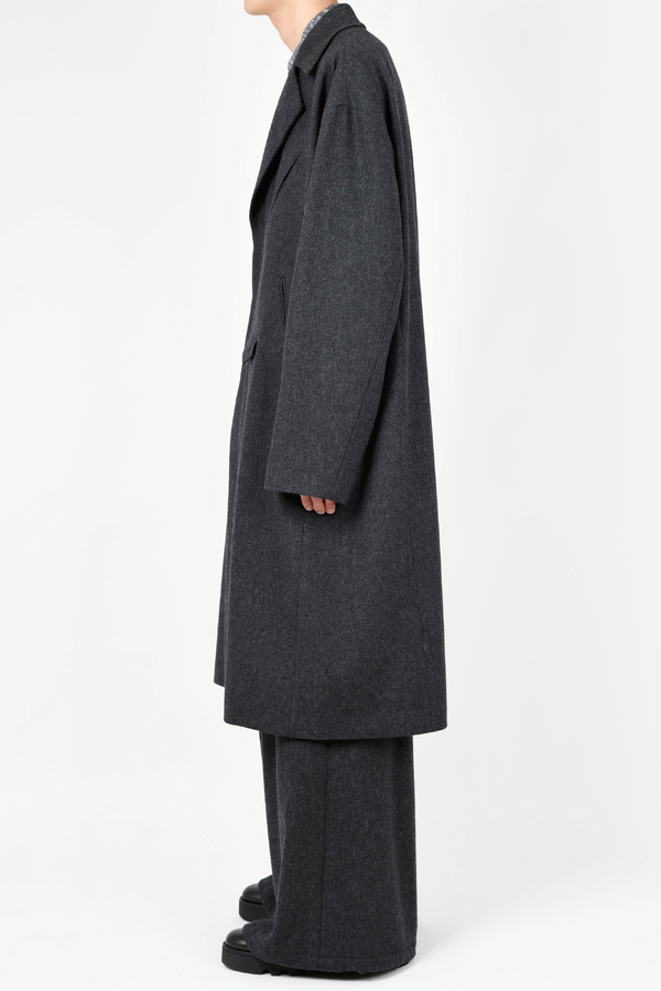 ライダースのディテールをミニマルに表現した、ルーズフィットシルエットのロングコートです。- WOOL FLANNEL:WOOL 80% POLYESTER 10% NYLON 5% ACRYLIC 5%