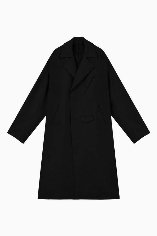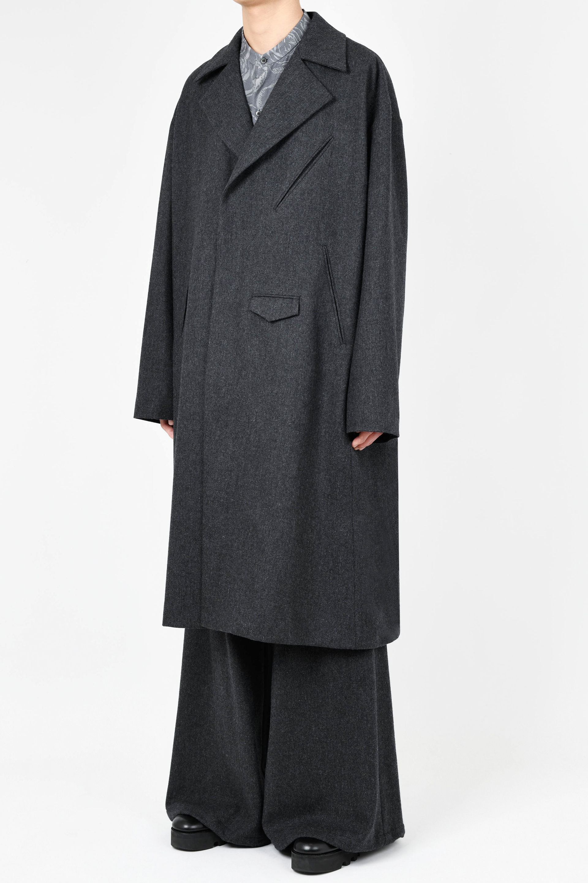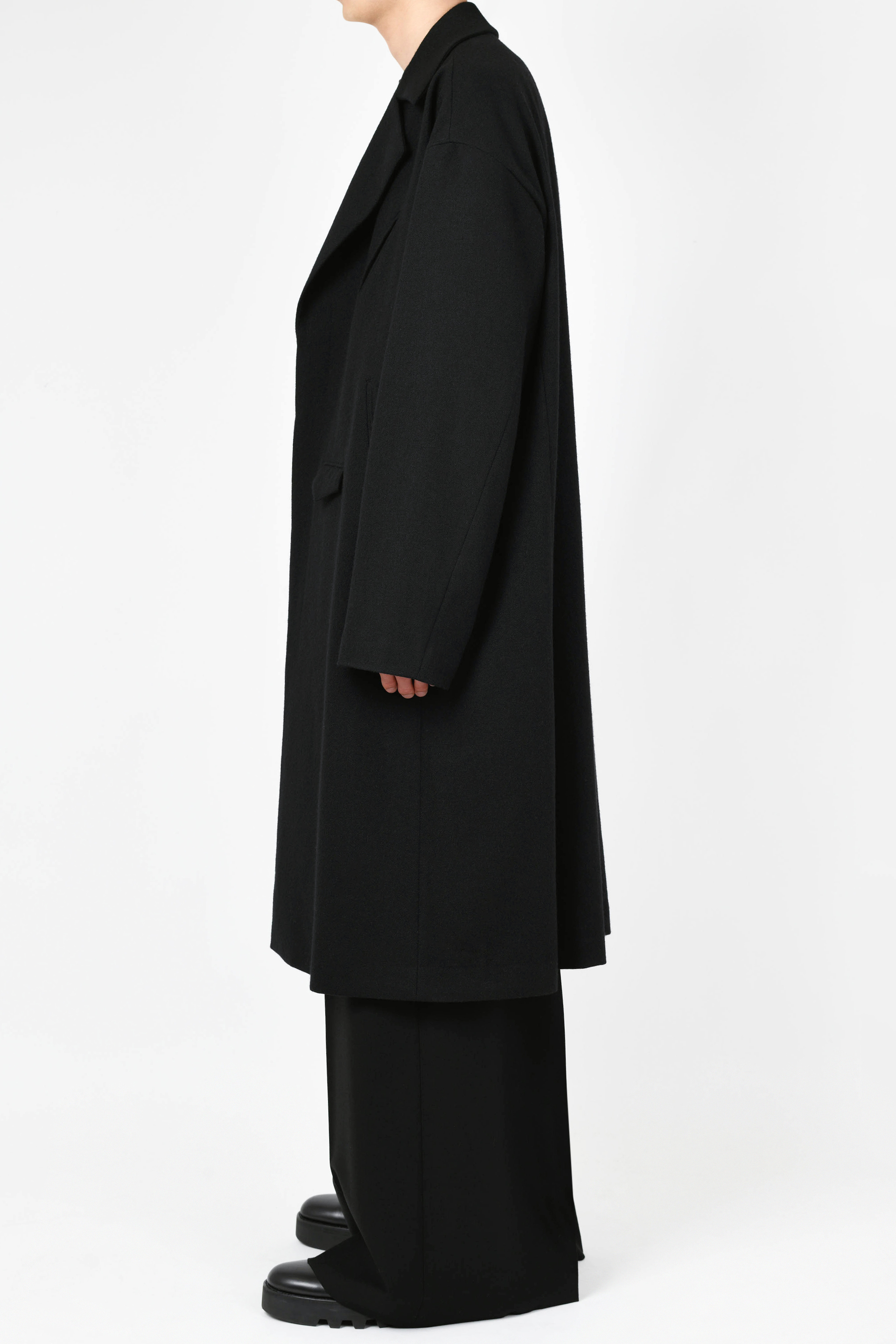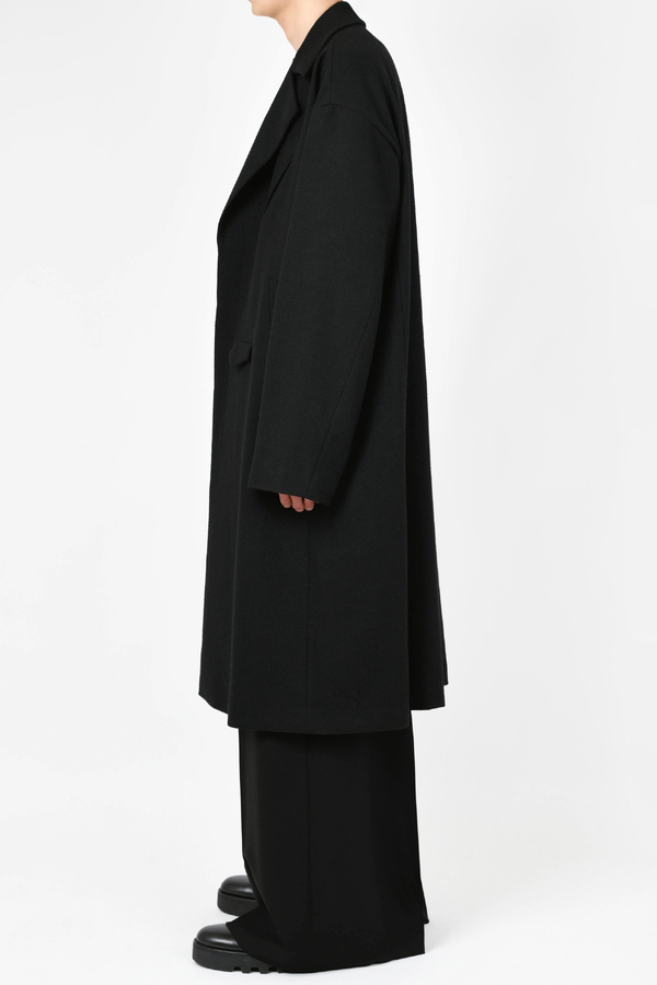 ライダースのディテールをミニマルに表現した、ルーズフィットシルエットのロングコートです。- WOOL FLANNEL:WOOL 80% POLYESTER 10% NYLON 5% ACRYLIC 5%
