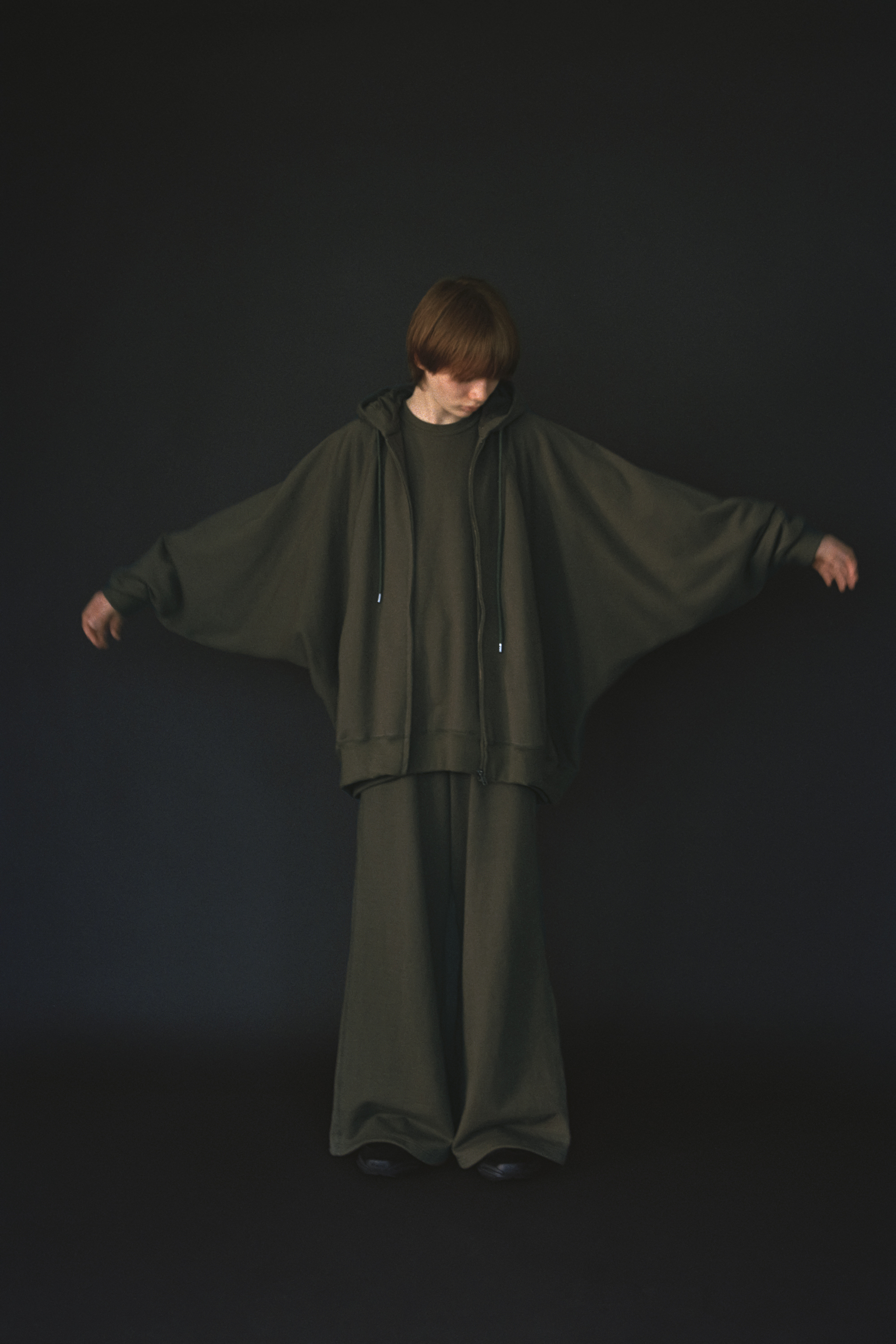 オリジナルの裏毛素材を使用したワイドフレアパンツ。