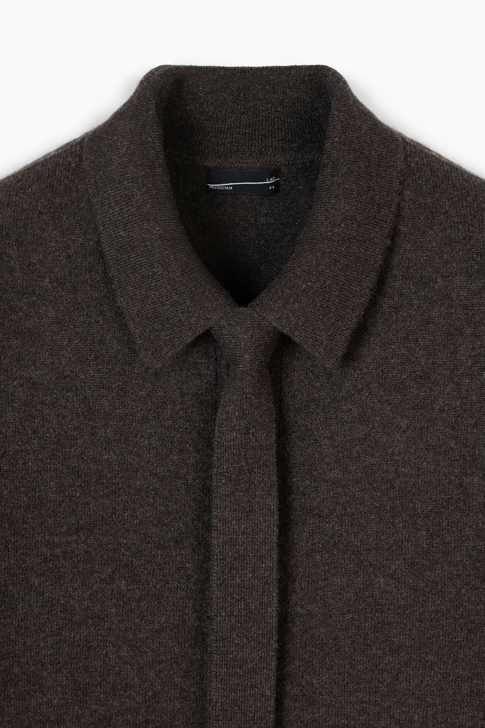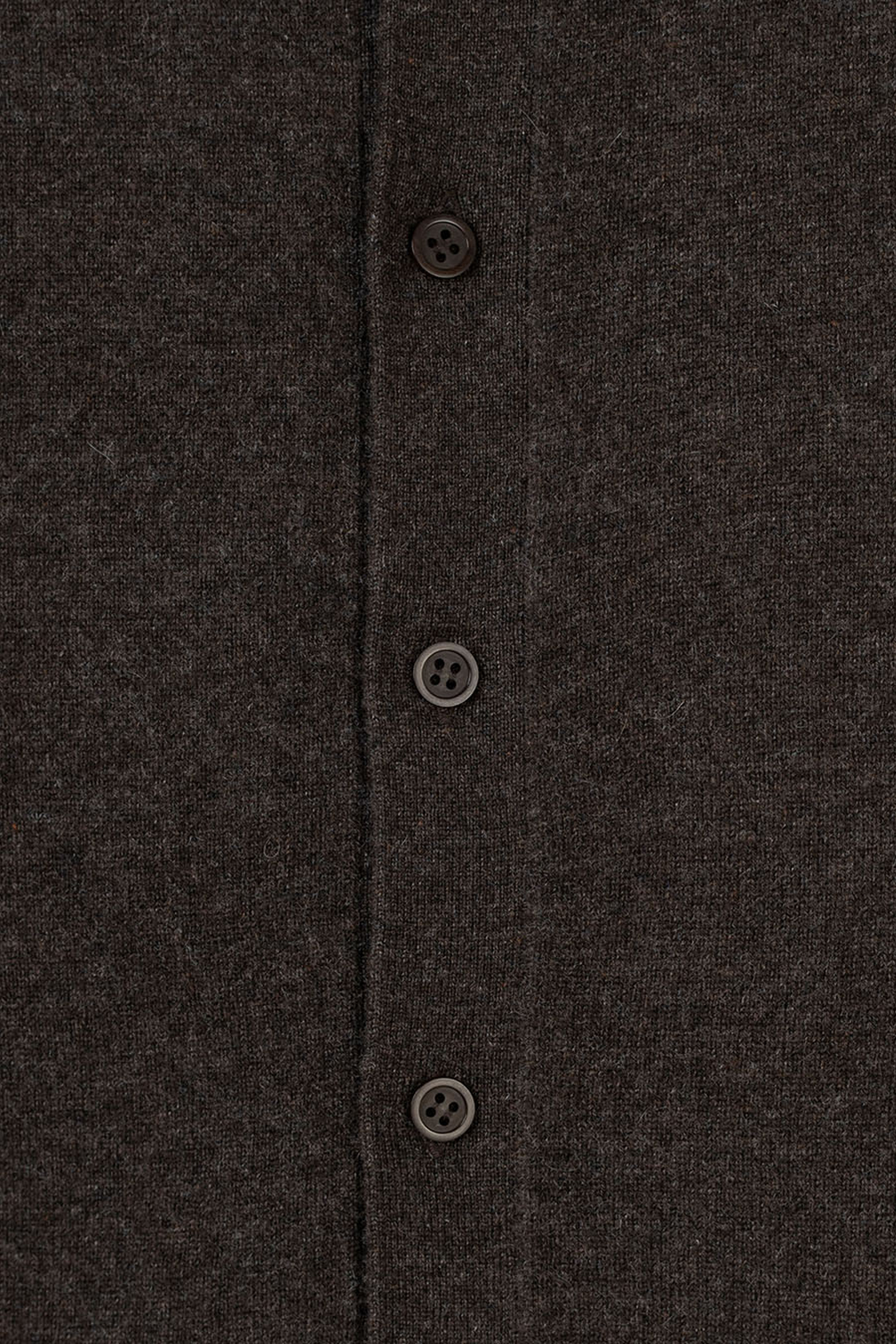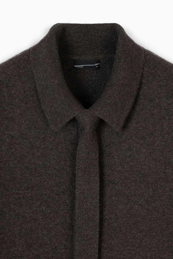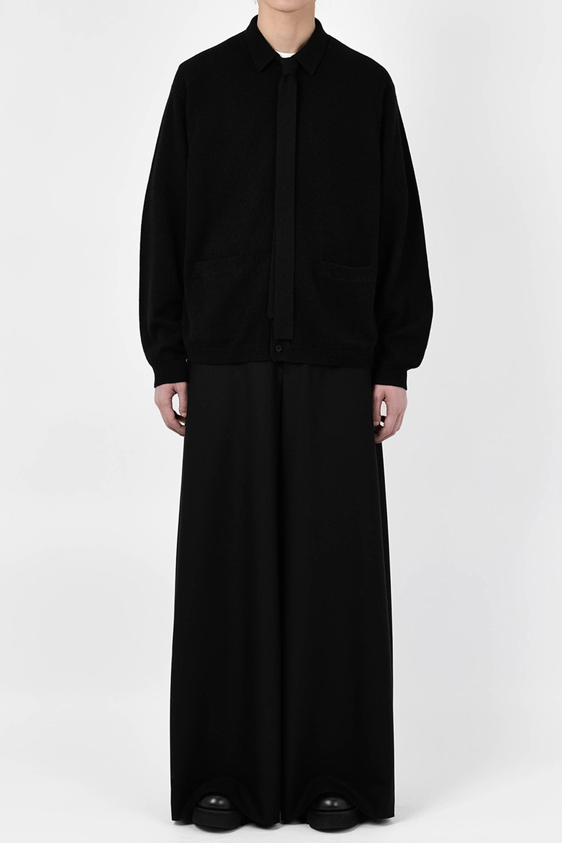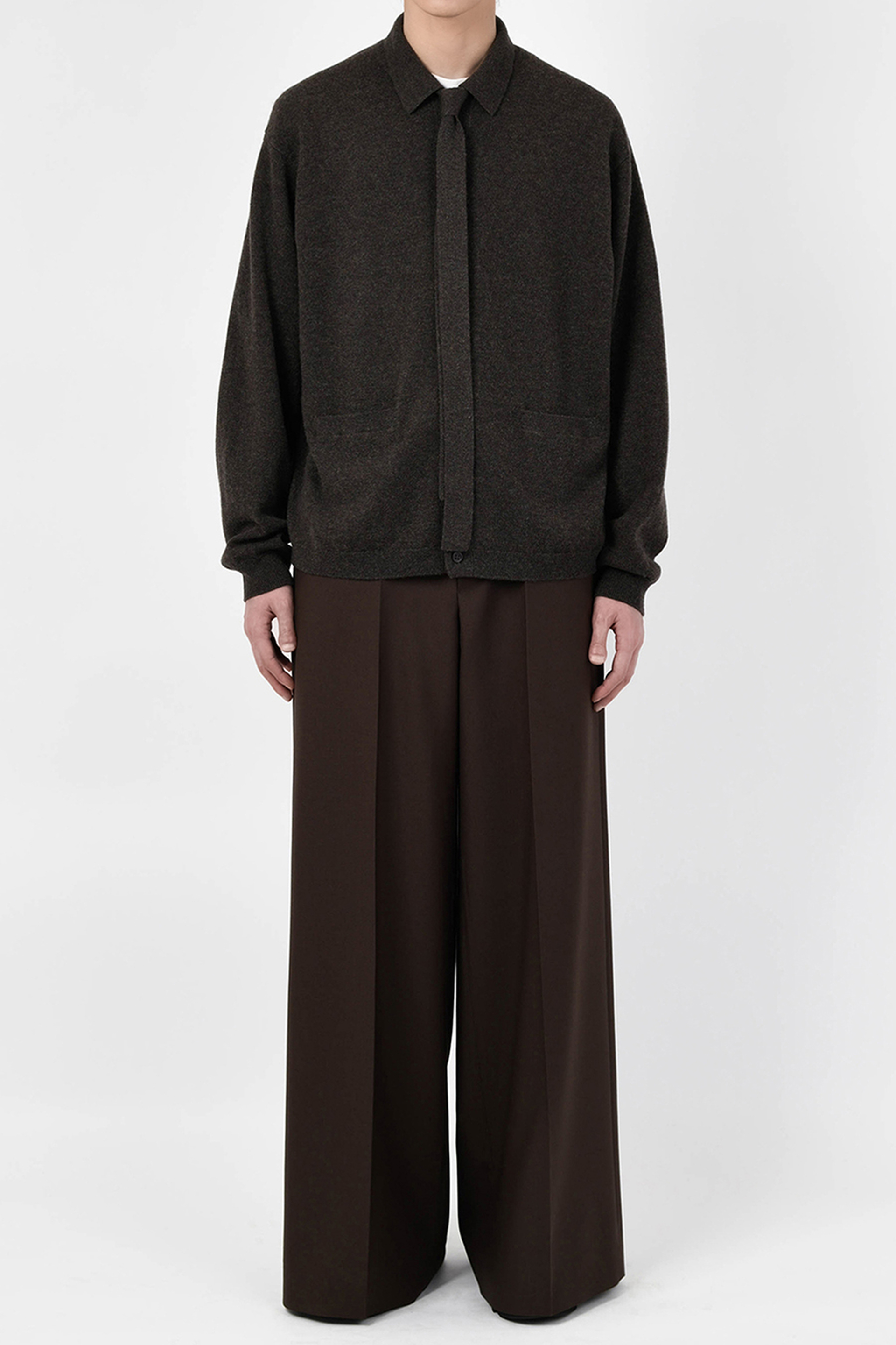 不純物を含まない上質なピュアカシミヤを使用したニットタイ付きカーディガン。