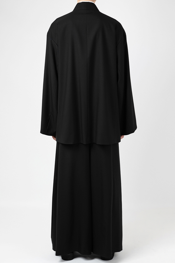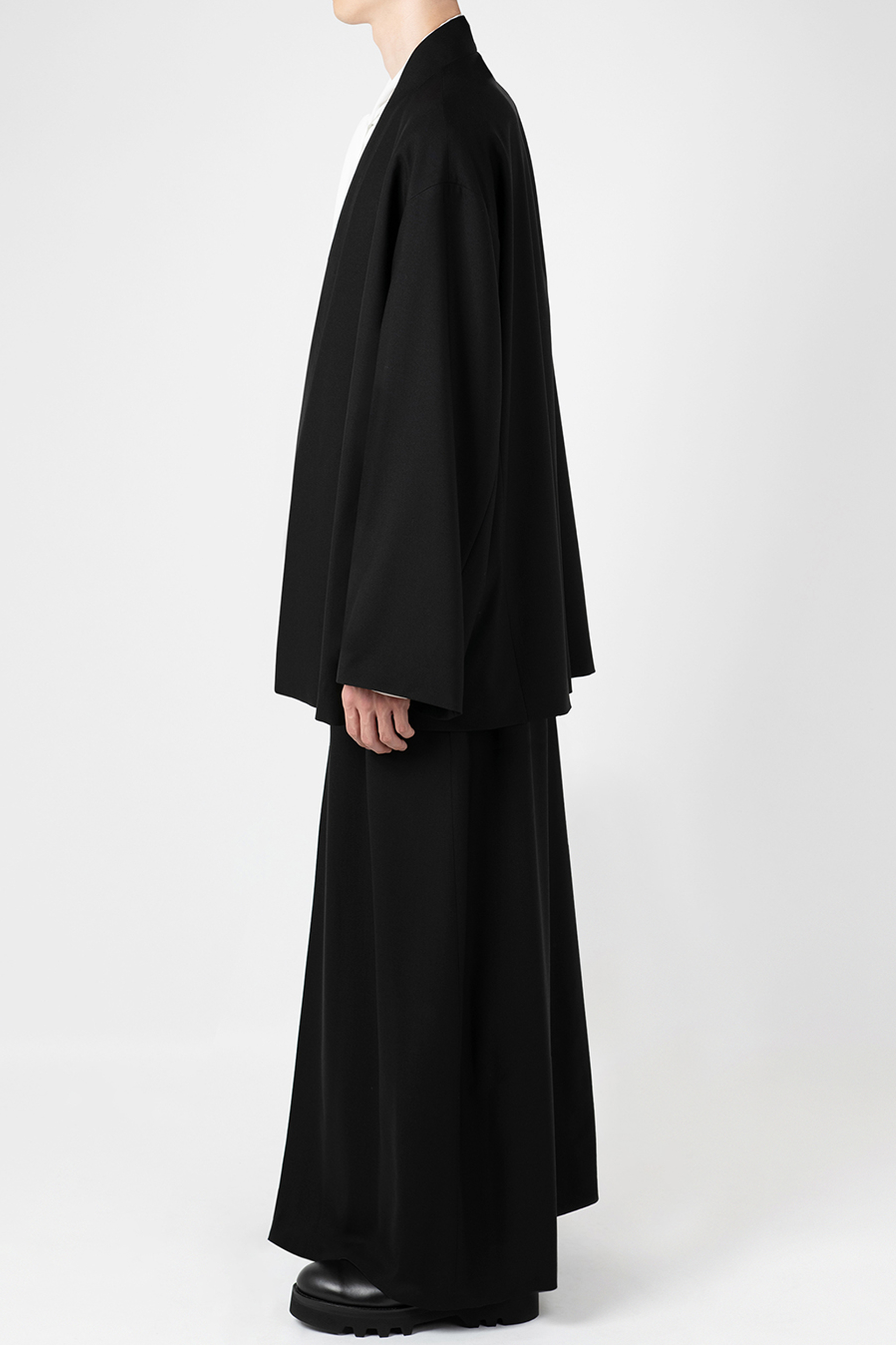 着物のディテールをミニマルに表現した、着流しのように軽く羽織れるミドル丈ジャケットです。- WOOL GABARDINE:WOOL 100%