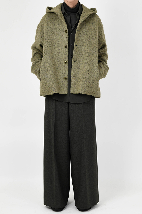 裏地付きでゆとりのあるサイズ感の為、インナー次第で羽織りとして着回しの幅が広がるアイテムです。- ALPACA SHAGGY:WOOL 65% ALPAKA 12% ACRYL 12% NYLON 11%