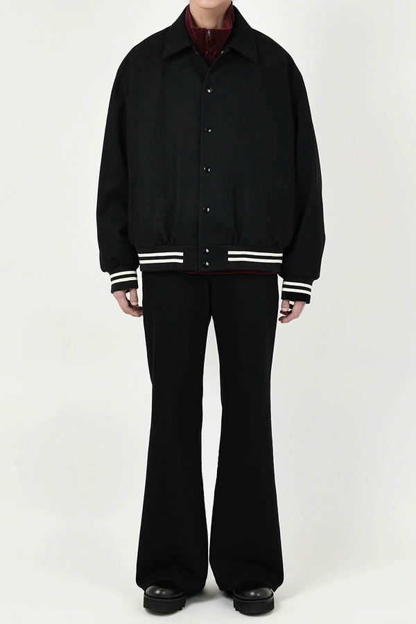 洗練されたミニマルディテールで、ほどよくゆとりを持たせた襟付きのスタジアムジャンパーです。