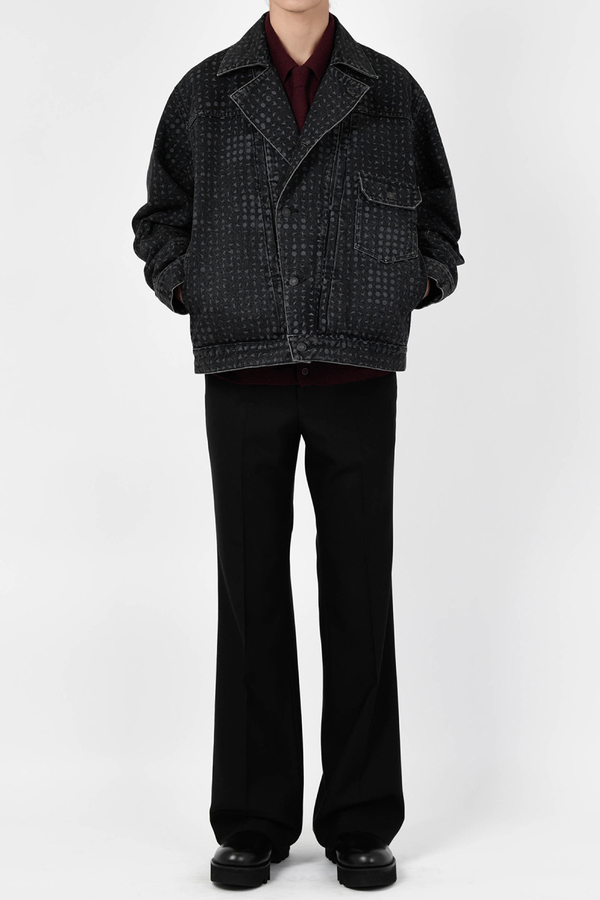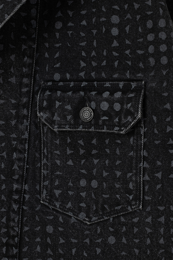 スタッズ柄の14ozデニム素材を使用したブルゾン。