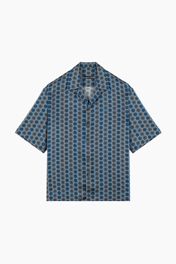 SILKY SATIN INKJET OCTAGON OPEN COLLAR SHORT SLEEVE SHIRT