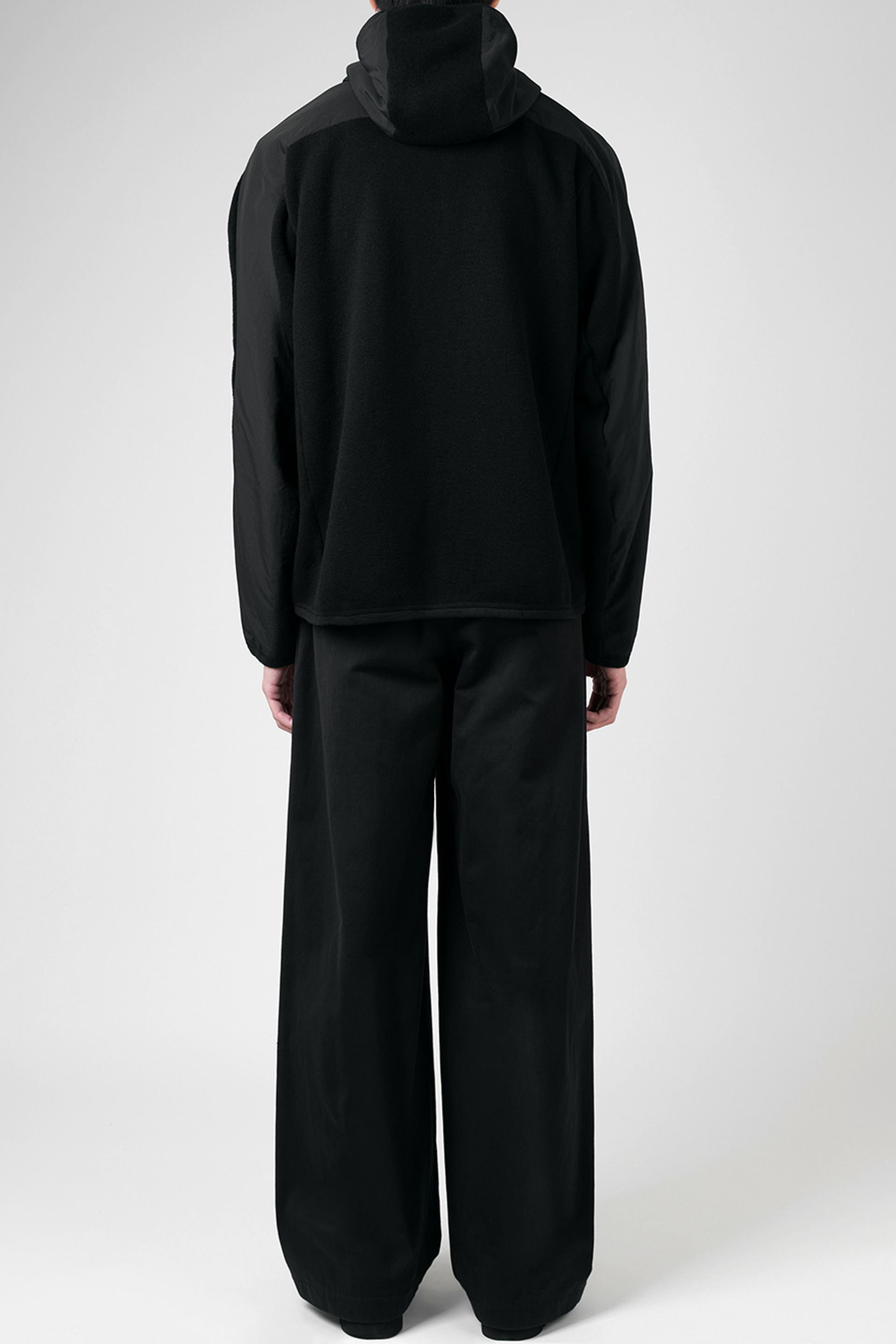 フードの内側にはフリースを配することでデザイン性と機能性を両立させています。
