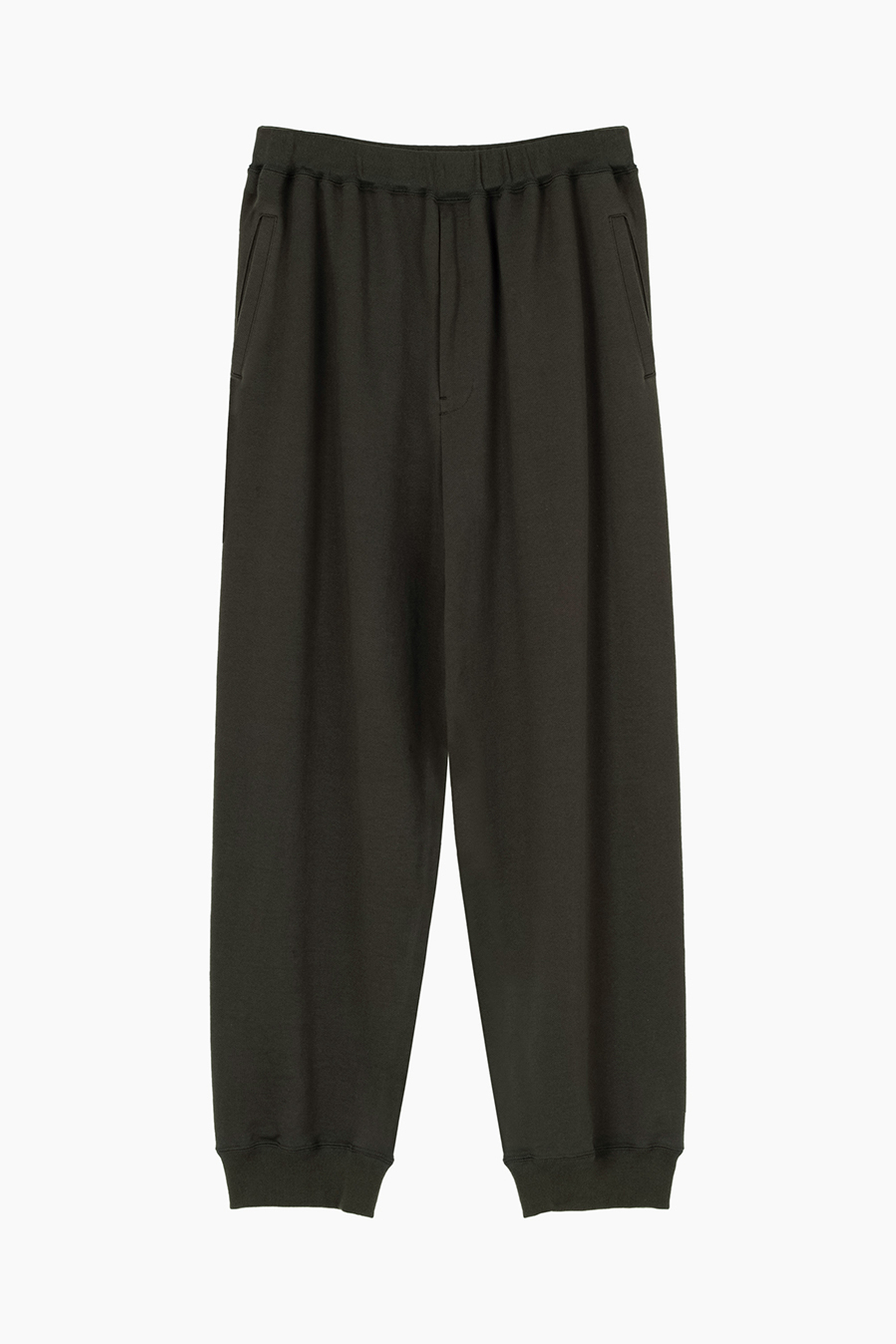 オリジナルの裏毛素材を使用したテーパードパンツ。