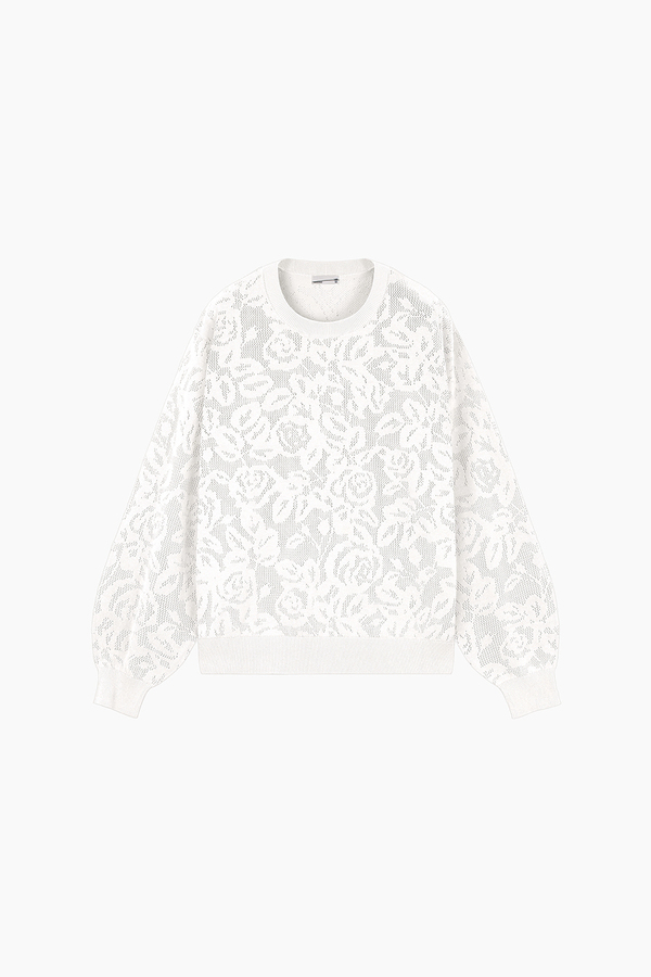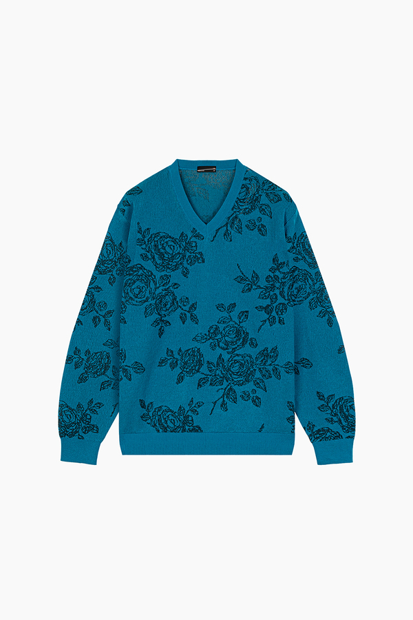 HAND-DRAWN FLOWER V-NECK PULLOVER