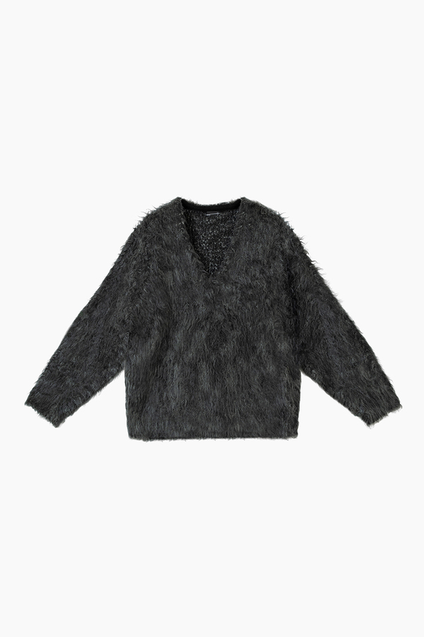 MIX SHAGGY V-NECK PULLOVER